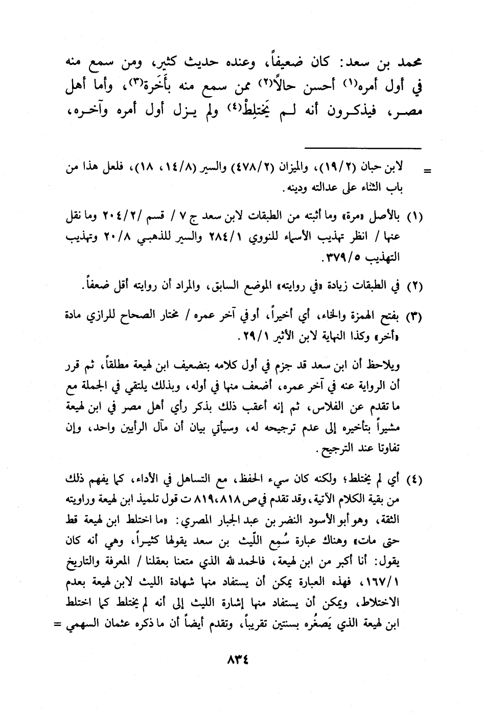 (¬4) أي لم يختلط؛ ولكنه كان سيء الحفظ، مع التساهل في الأداء، كما يفهم ذلك من بقية الكلام الآتية، وقد تقدم في ص 818، 819 ت قول تلميذ ابن لهيعة وراويته الثقة، وهو أبو الأسود النضر بن عبد الجبار المصري: "ما اختلط ابن لهيعة قط حتى مات" وهناك عبارة سُمِع الليث بن سعد يقولها كثيرًا، وهي أنه كان يقول: أنا أكبر من ابن لهيعة، فالحمد لله الذي متعنا بعقلنا/ المعرفة والتاريخ 1/ 167، فهذه العبارة يمكن أن يستفاد منها شهادة الليث لابن لهيعة بعدم الاختلاط، ويمكن أن يستفاد منها إشارة الليث إلى أنه لم يختلط كما اختلط ابن لهيعة الذي يَصغُره بسنتين تقريبًا، وتقدم أيضًا أن ما ذكره عثمان السهمي =
