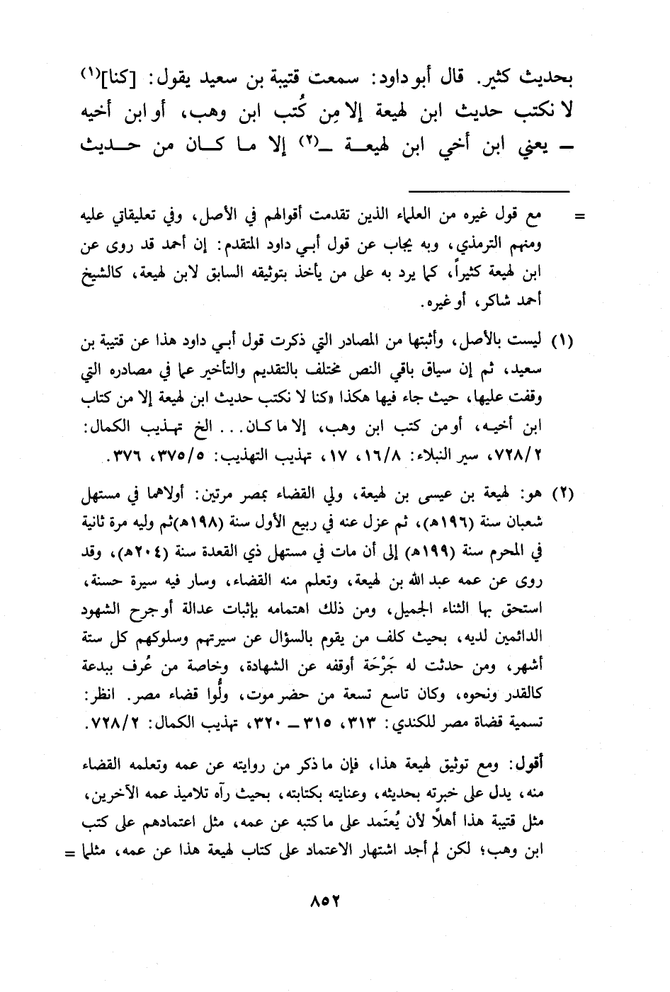 (¬1) ليست بالأصل، وأثبتها من المصادر التي ذكرت قول أبي داود هذا عن قتيبة بن سعيد، ثم إن سياق باقي النص مختلف بالتقديم والتأخير عما في مصادره التي وقفت عليها، حيث جاء فيها هكذا "كنا لا نكتب حديث ابن لهيعة إلا من كتاب ابن أخيه، أو من كتب ابن وهب، إلا ما كان ... إلخ تهذيب الكمال: 2/ 728، سير النبلاء: 8/ 16، 17، تهذيب التهذيب: 5/ 375، 376.
