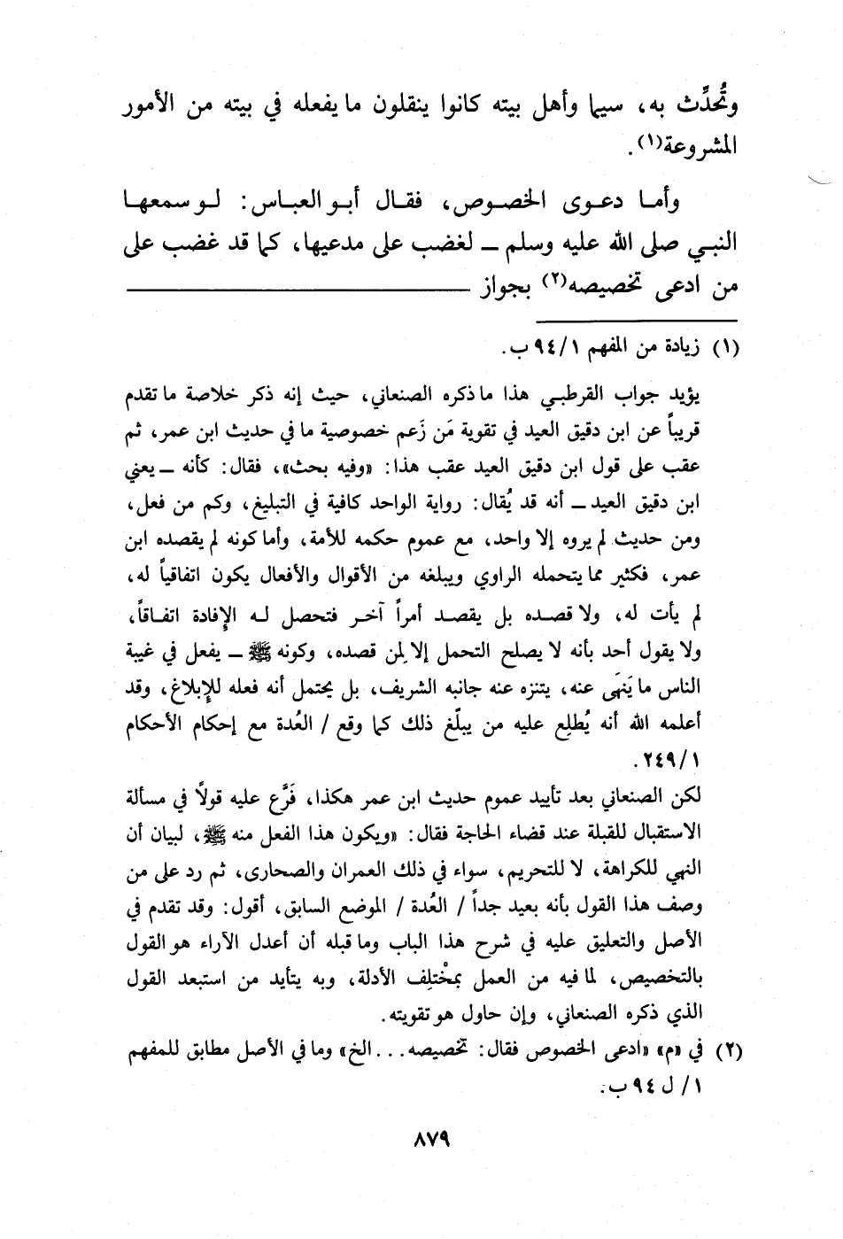 (¬2) في "م" "ادعى الخصوص فقال تخصيصه ... إلخ" وما في الأصل مطابق للمفهم 1 / ل 94 ب.
