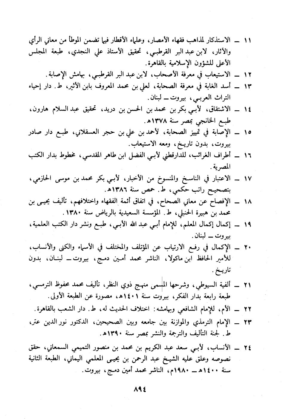 20 - الإِكمال في رفع الارتياب عن المؤتلف والمختلف في الأسماء والكنى والأنساب، للأمير الحافظ ابن ماكولا، الناشر محمد أمين دمج، بيروت - لبنان، بدون تاريخ.