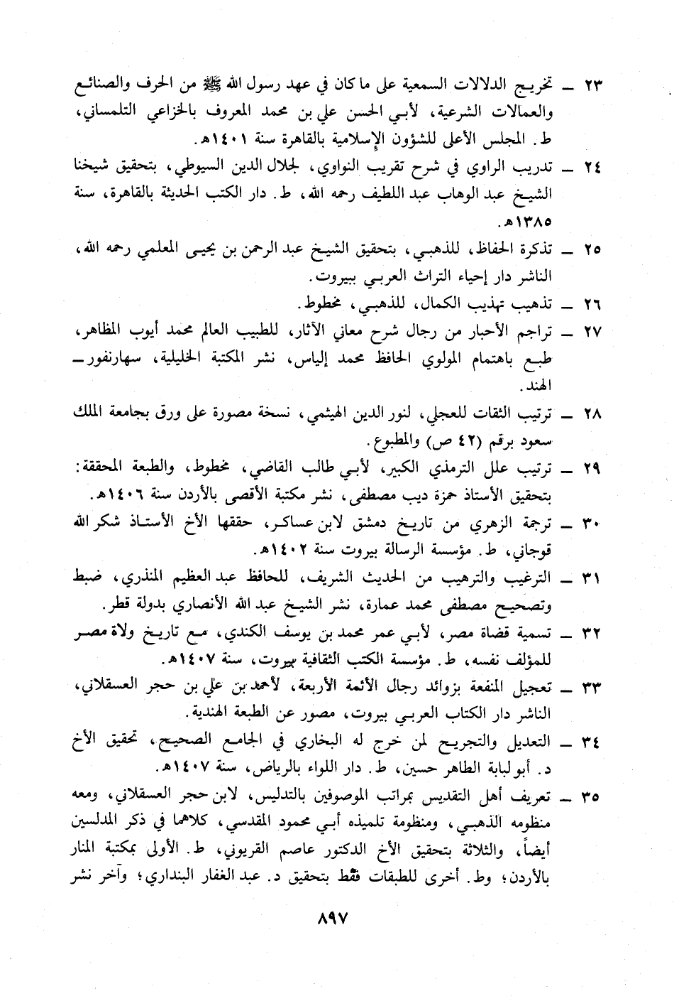 33 - تعجيل المنقعة بزوائد رجال الأئمة الأربعة، لأحمد بن علي بن حجر العسقلاني، الناشر دار الكتاب العربي بيروت، مصور عن الطبعة الهندية.