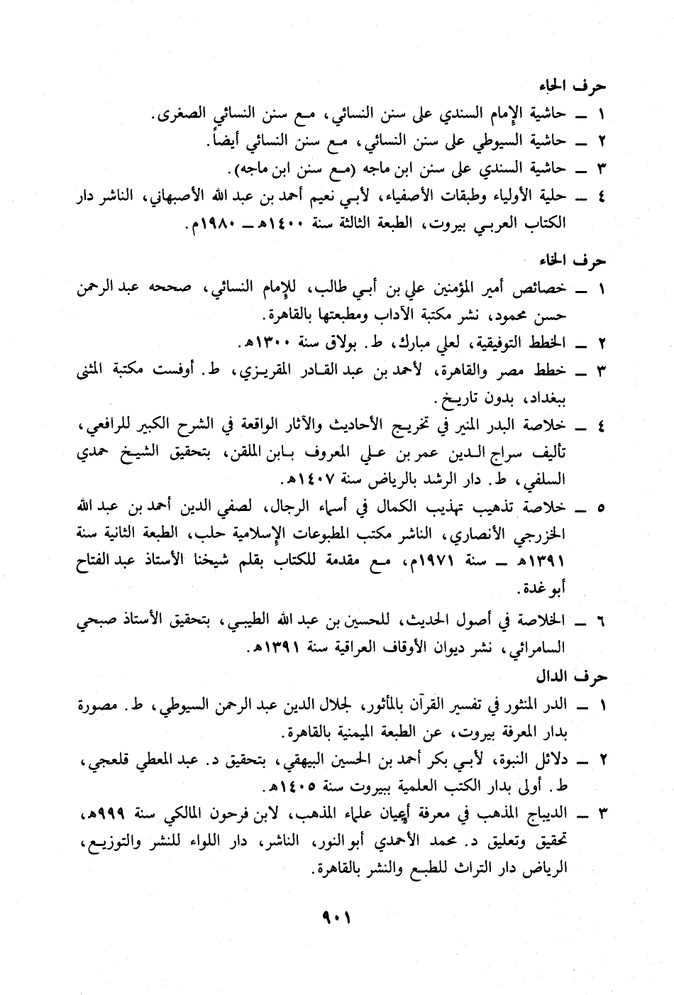 1 - خصائص أمير المؤمنين علي بن أبي طالب، للإِمام النسائي، صححه عبد الرحمن حسن محمود، نشر مكتبة الآداب ومطبعتها بالقاهرة.