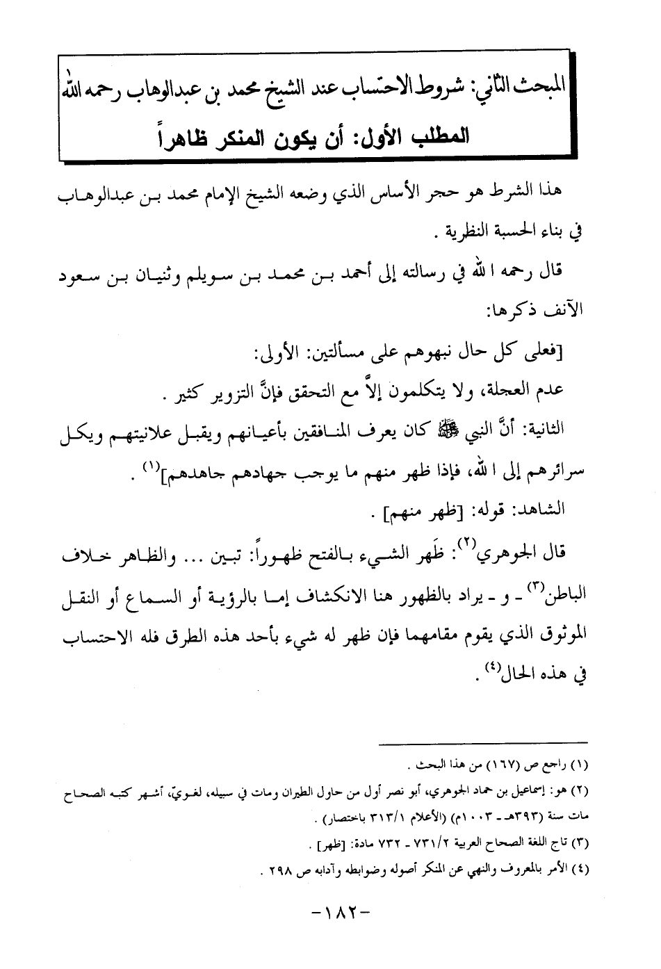 هذا الشرط هو حجر الأساس الذي وضعه الشيخ الإمام محمد بن عبد الوهاب في بناء الحسبة النظرية.