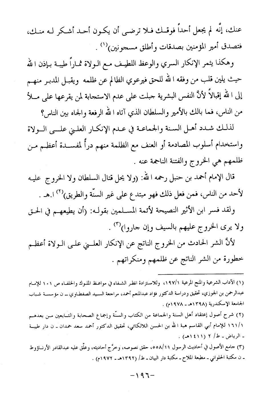 1-الآداب الشرعية والمنح المرعية 1/197, وللأستزادة انظر الشفاء في مواعظ الملوك والخفاء ص 101 للإمام عبد الرحمن بن الجوزي, تحقيق ودراسة الدكتور فؤاد عبد المنعم أحمد, مراجعة السيد الصفطاوي- ن مؤسسة شباب الجامعة الإسكندرية " 1398-1978م".