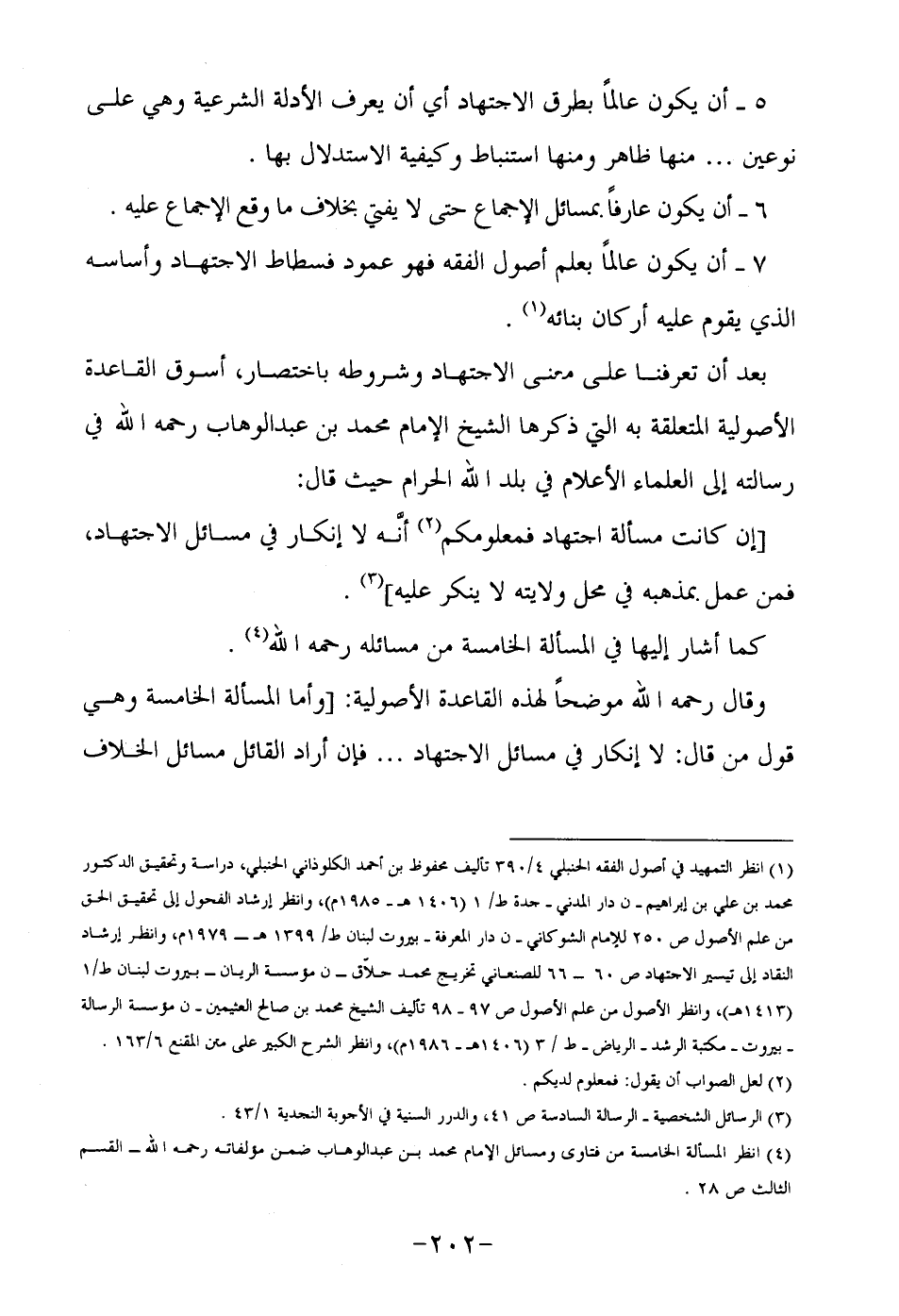 بعد أن تعرفنا على معنى الاجتهاد وشروطه باختصار , أسوق القاعدة لأصولية المتعلقة به التي ذكرها الشيخ الإمام محمد بن عبد الوهاب رحمه الله في رسالته إلىالعلماء الأعلام في بلد الله الحرام حيث قال: