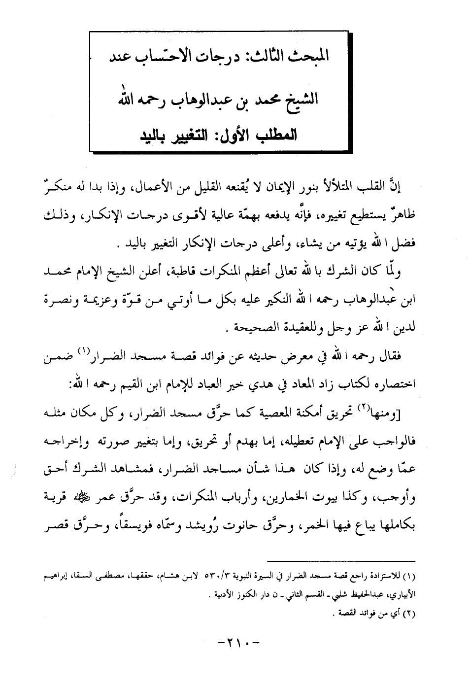 المبحث الثالث: درجات الاحتساب عند الشيخ محمد بن عبد الوهاب رحمه الله