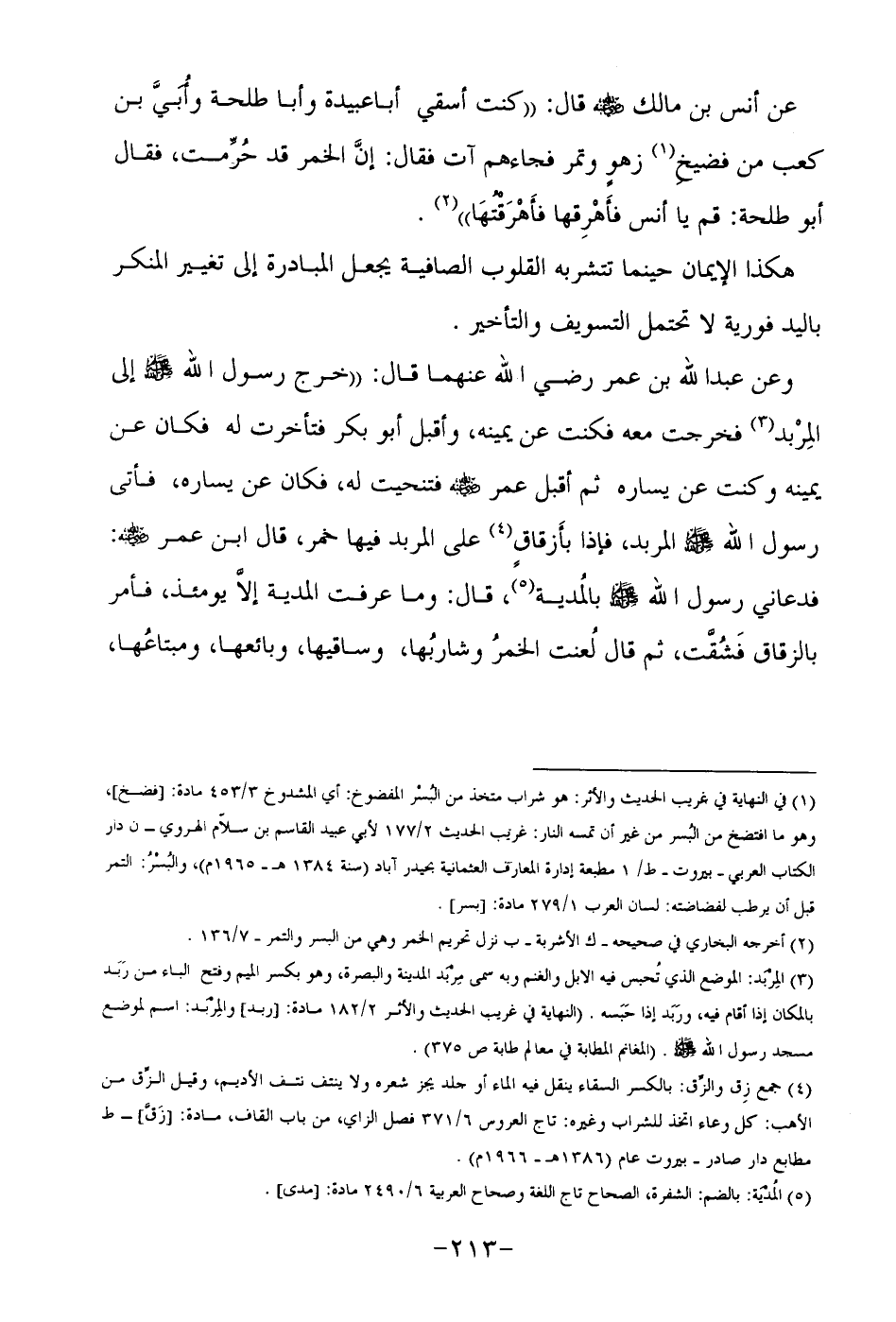 1-في النهاية فيغريب الحديث والثر: هو شارب متخذ من البسر المفضوح: أي المشدوخ 3/453 مادة " فضخ", وهو ما افتضخ من البسر من غير أن تمسه النار: غريب الحديث 2/177 لأبي عبيد القاسم بن سلام الهروي- ن دار الكتاب العربي- بيروت –ط/1 مطبعة إدارة المعارف العثمانية بحيدر آباد " سنة 1384هـ-1965م" والمربد: اسم لموضع مسجد رسول الله صلى الله عليه وسلم. " المغانم المطابة في معالم طابة ص 375".