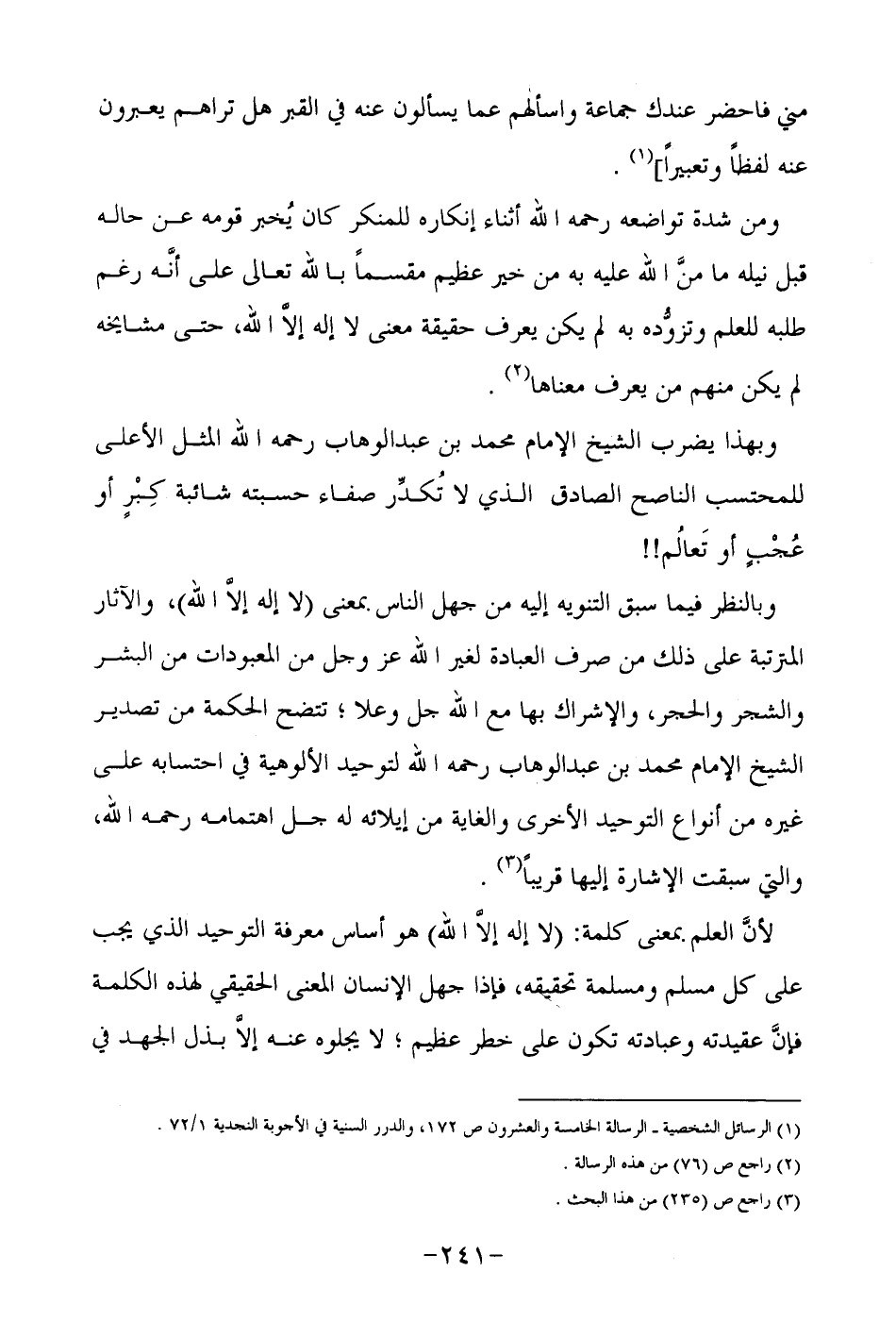 1-الرسائل الشخصية – الرسالة الخامسة والعشرون ص 172, والدرر السنية في الأجوبة النجدية 1/72.