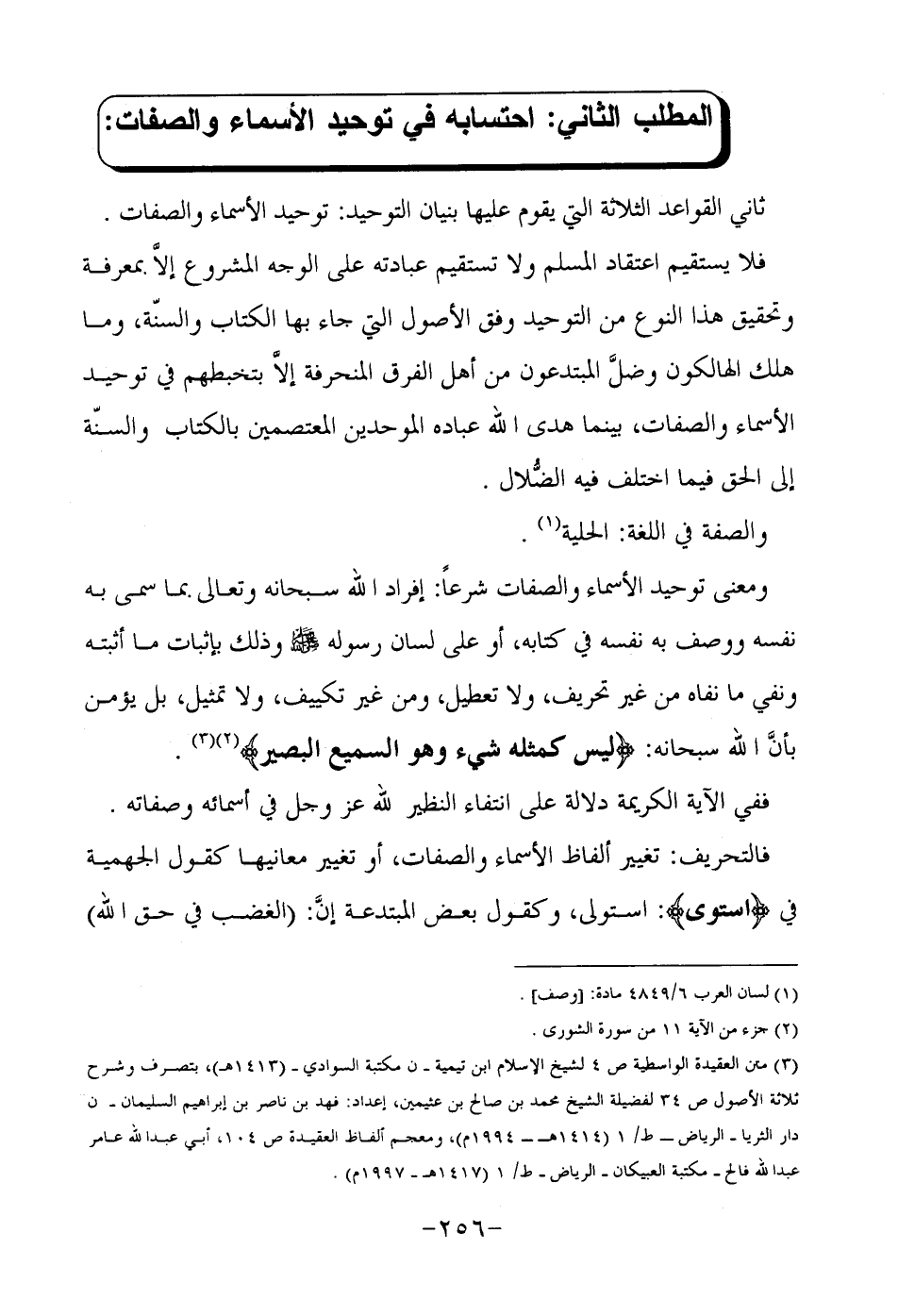 3-متن العقيدة الواسطية ص 4 لشيخ الإسلام ابن تيمية- ن مكتبة السوادي- "1413هـ", بتصرف وشرح ثلاثة الأصول ص 34 لفضيلة الشيخ محمد بن صالح عثيمين, إعداد فهد بن ناصر بن إبراهيم السليمان- ن دار الثريا- الرياض- ط/1"1414هـ-1994م", ومعجم ألفاظ العقيدة ص 104, أبي عبد الله عامر عبد الله فالح- مكتبة العبيكان- الرياض- ط/1"1417هـ-1997م".