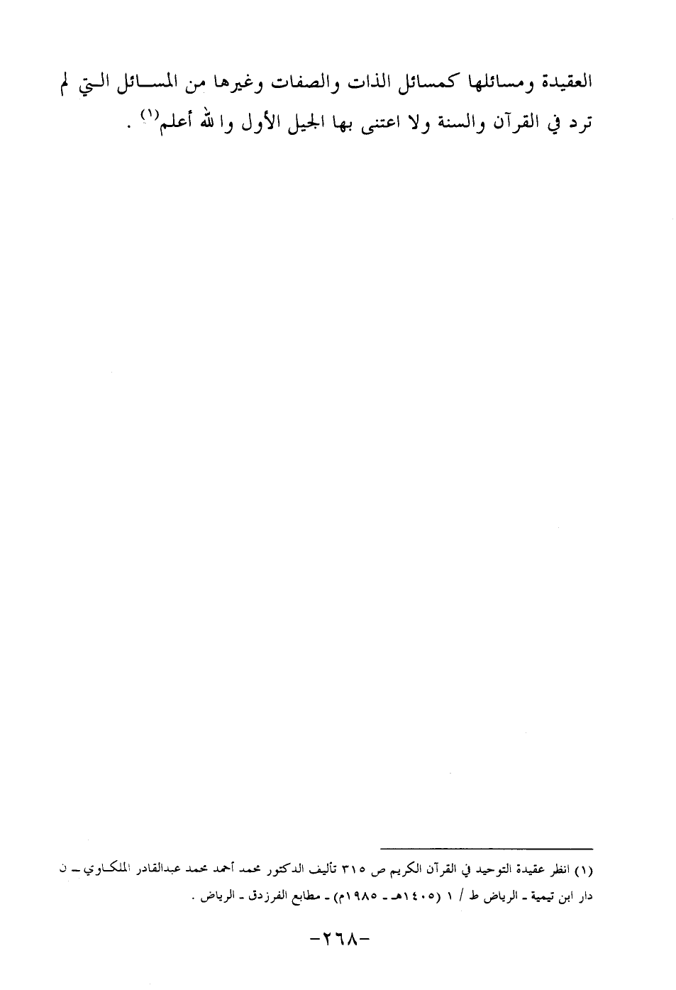 1-انظر عقيدة التوحيد في القرآن الكريم ص 315تأليف الدكتور محمد أحمد محمد عبد القادر الملكاوي –ن دار ابن تيمية- الرياض ط/1"1405هـ-1985م" –مطابع الفرزدق- الرياض.