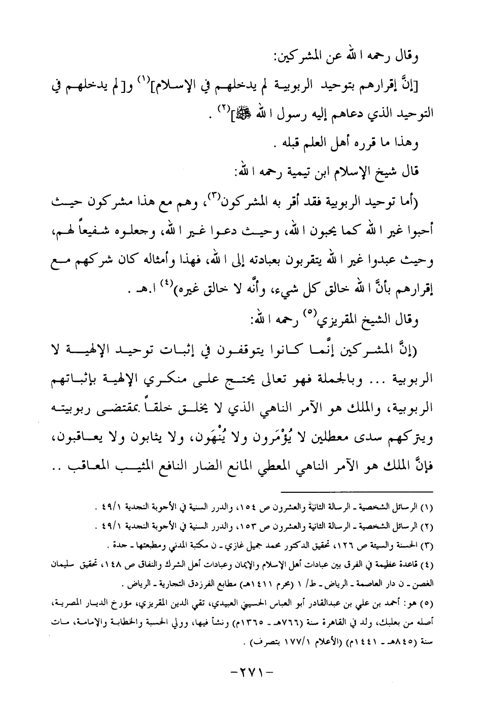 2- الرسائل الشخصية – الرسالة الثانية والعشرون ص 153, والدرر السنية في الأجوبة النجدية 1/49