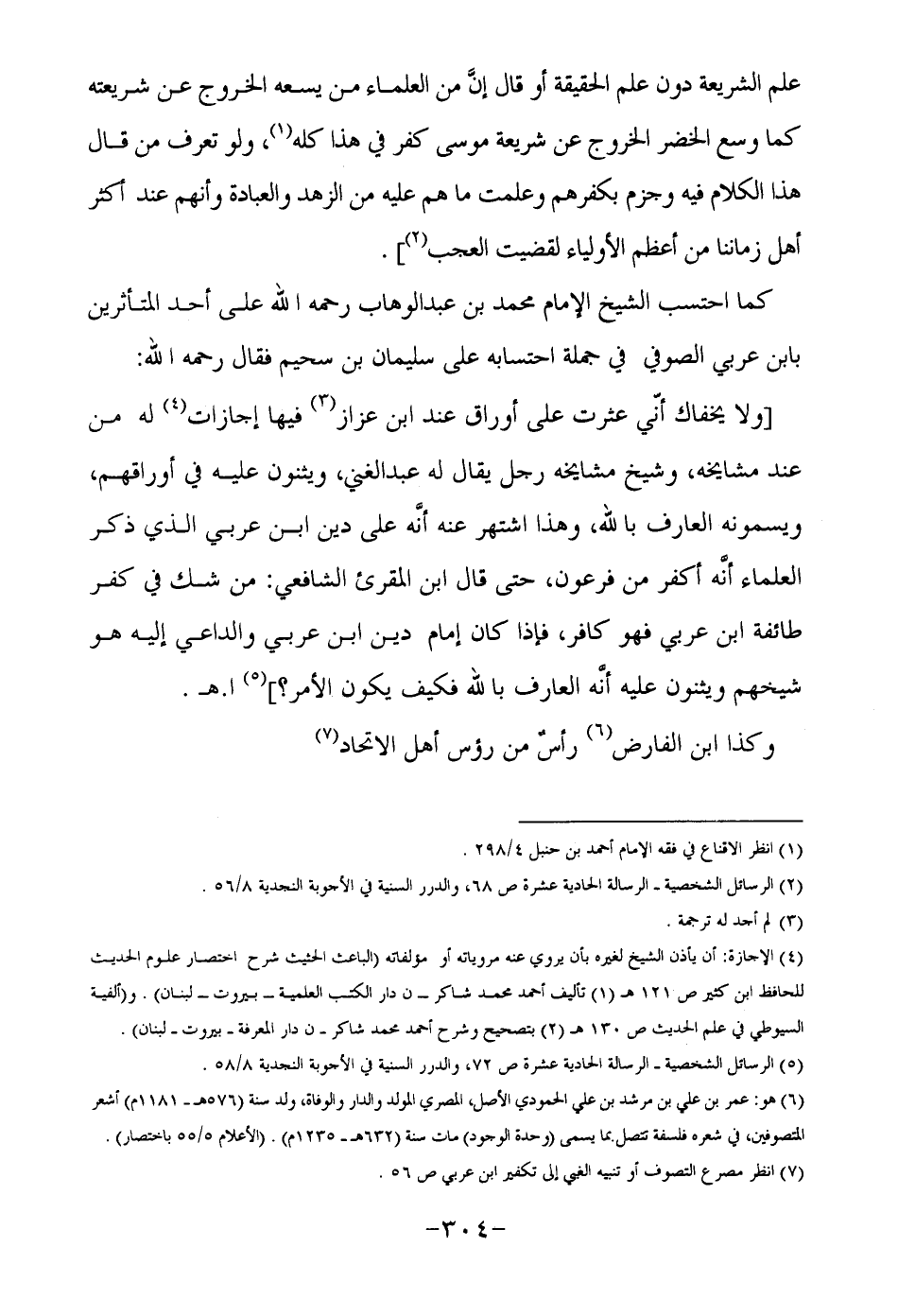 7-انظر مصرع التصوف أو تنبيه الغبي إلى تكفير ابن عربي ص 56.