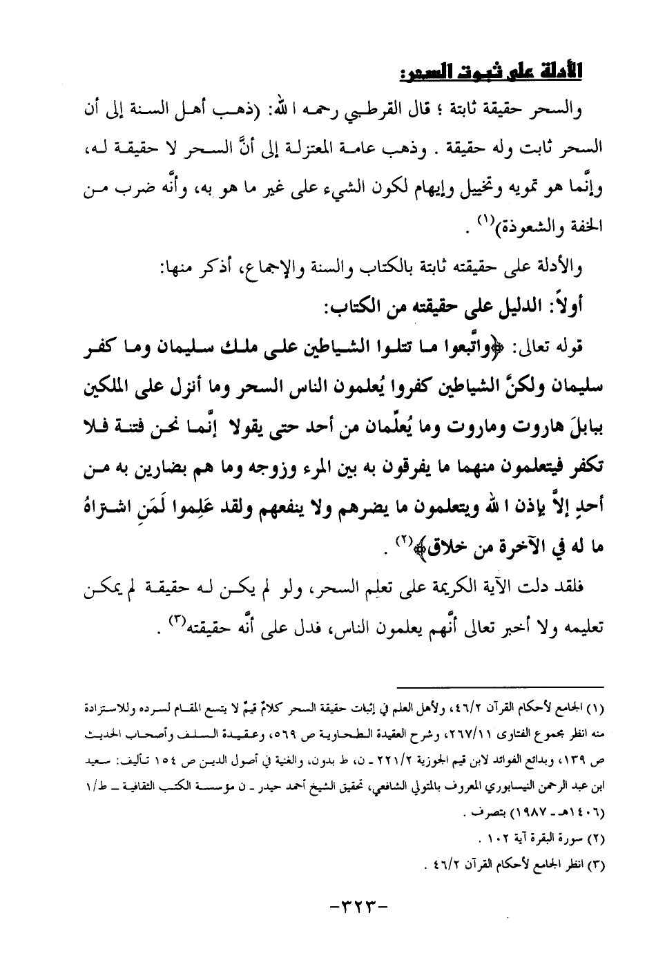 فلقد دلت الآية الكريمة على تعلم السحر, ولو لم يكن له حقيقة لم يمكن تعليمه ولا أخبر تعالى أنهم يعلمون الناس, فدل أنه حقيقة3.