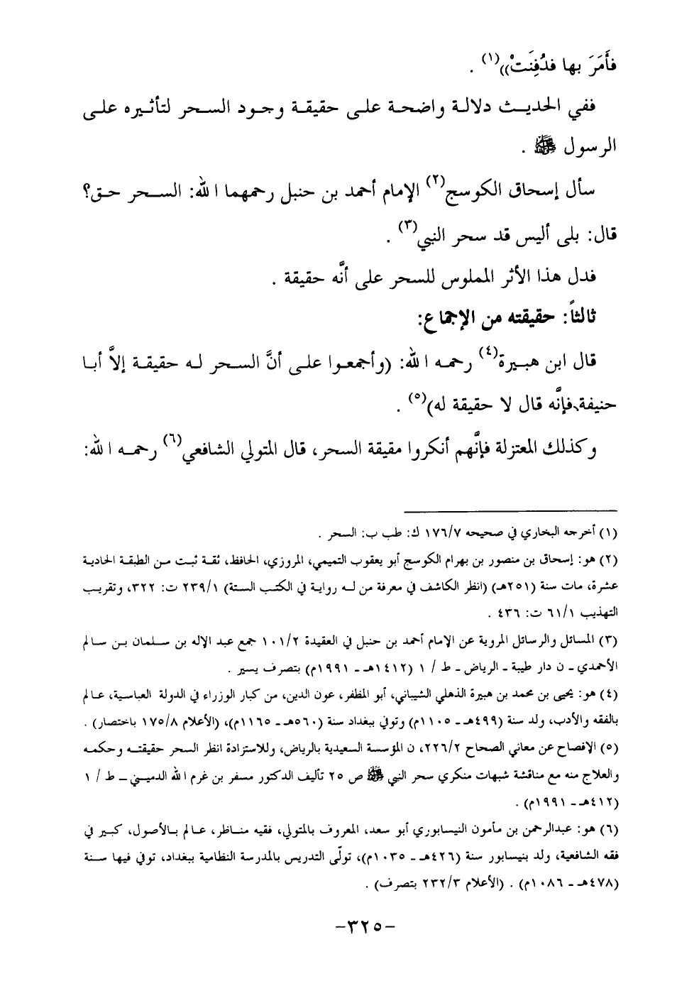 5-الإفصاح عن معاني الصحاح 2/226, ن المؤسسة السعيدية بالرياض, للإستزادة انظر السحر حقيقته وحكمه والعلاج منه مع مناقشة شبهات منكري سحر النبي صلى الله عليه وسلم ص 25 تأليسف الدكتور سفر بن غرم الله الدميني- ط/1 "1412هـ-1991م".