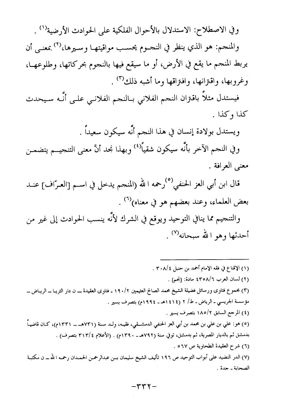 قال ابن أبي العز الحنفي5 رحمه الله " المنجم يدخل في اسم " العراف" عند بعض العلماء , وعند بعضهم هو في معناه"6.