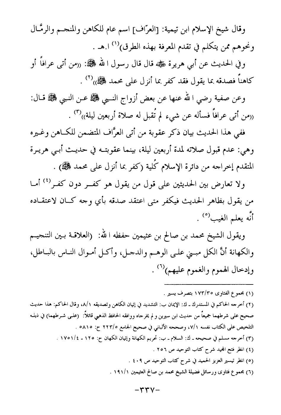 وقال شيخ الإسلام ابن تيمية: [العرّاف] اسم عام للكاهن والمنجم والرمَّال ونحوهم ممن يتكلم في تقدم المعرفة بهذه الطرق) ؟ 1 ا. هـ.
