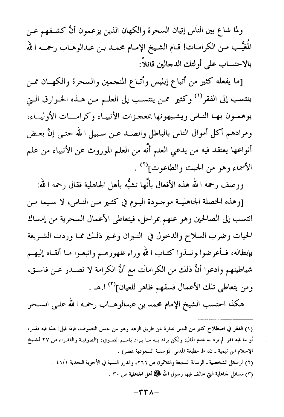 ولما شاع بين الناس إتيان السحرة والكهان الذين يزعمون أنَّ كشفهم عن المُغيَّب من الكرامات! قام الشيخ الإمام محمد بن عبد الوهاب رحمه الله بالاحتساب على أولئك الدجالين قائلاً: