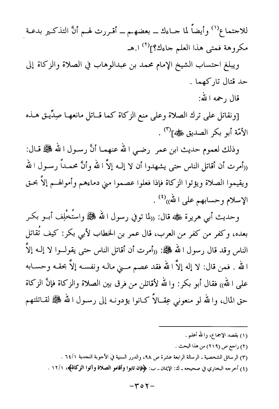 3 الرسائل الشخصية- الرسالة الرابعة عشرة ص 98، والدرر السنية في الأجوبة النجدية 1/64.