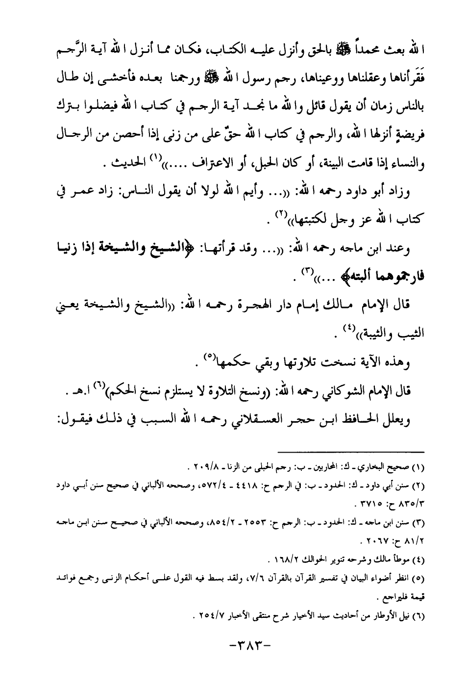 5 انظر أضواء البيان في تفسر القرآن بالقرآن 6/7، ولقد بسط فيه القول على أحكام الزنى وجمع فوائد قيمة فليراجع.