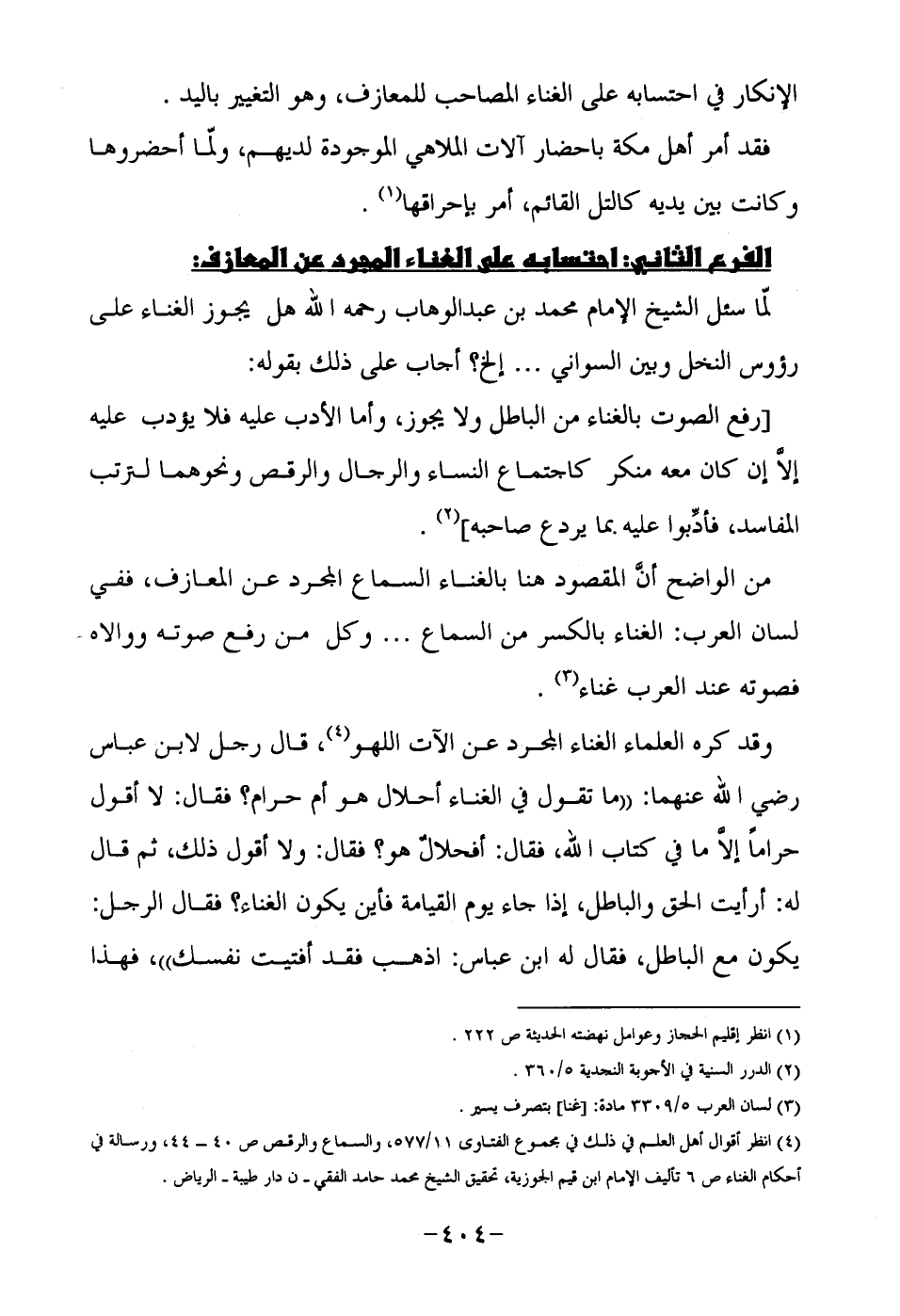 لما سئل الشيخ الإمام محمد بن عبد الوهاب رحمه الله هل يجوز الغناء على رؤوس النخل وبين السواني ... إلخ؟ أجاب على ذلك بقوله: