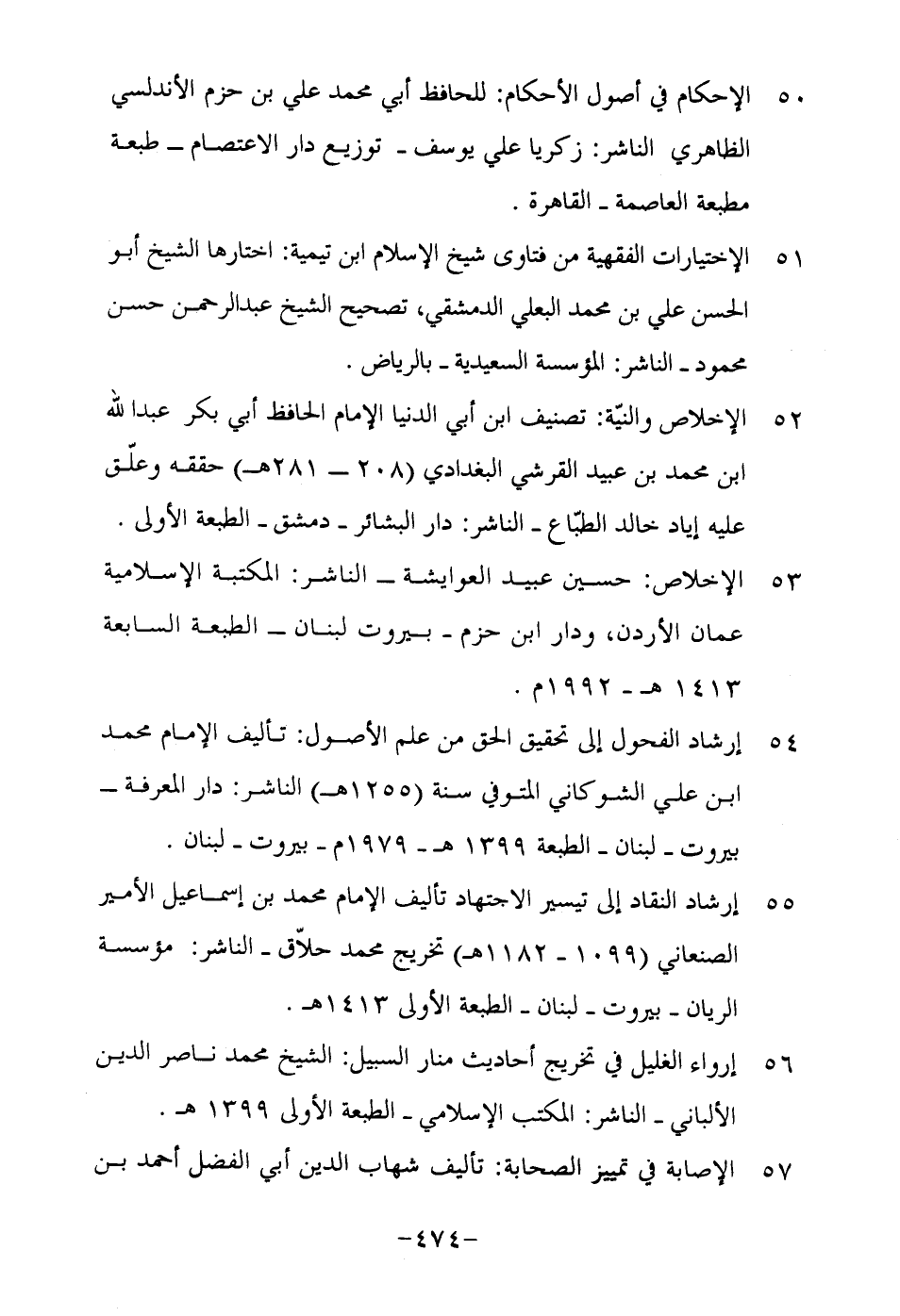 55-إرشاد النقاد إلى تيسير الاجتهاد تأليف الإمام محمد بن إسماعيل الأمير الصنعاني "1099-1182هـ" تخريج محمد حلاق- الناشر: مؤسسة الريان – بيروت – لبنان- الطبعة الأولى 1413هـ.