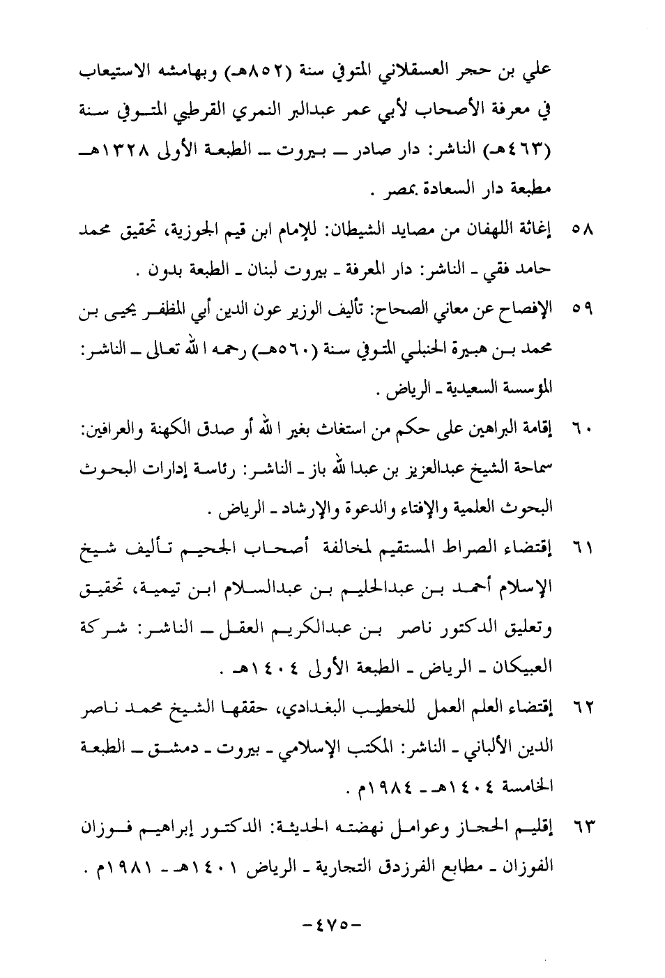 61-اقتضاء الصراط المستقيم لمخالفة أصحاب الجحيم تأليف شيخ الإسلام احمد بن عبد الحليم بن عبد السلام ابن تيمية, تحقيق وتعليق الدكتور ناصر بن عبد الكريم العقل- الناشر: شركة العبيكان- الرياض- الطبعة الأولى 1404هـ.