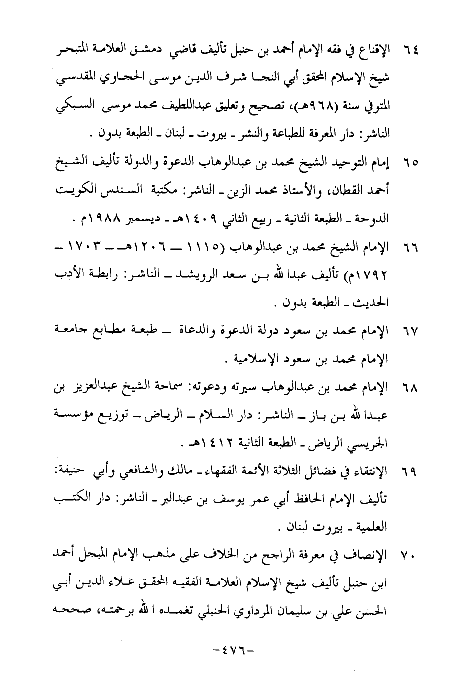 64-الإقناع في فقه الغمام أحمد بن حنبل تأليف قاضي دمشق العلامة المتبحر شيخ الإسلام المحقق أبي النجا شرف الدين موسى الحجاوي المقدسي المتوفى سنة "968هـ", تصحيح وتعليق عبد اللطيف محمد موسى السبكي الناشر: دار المعرفة للطباعة والنشر- بيروت- لبنان- الطبعة بدون.