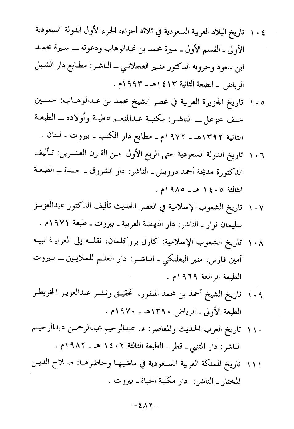 111-تاريخ المملكة العربية السعودية في ماضيها وحاضرها: صلاح الدين المختار- الناشر: دار مكتبة الحياة- بيروت.