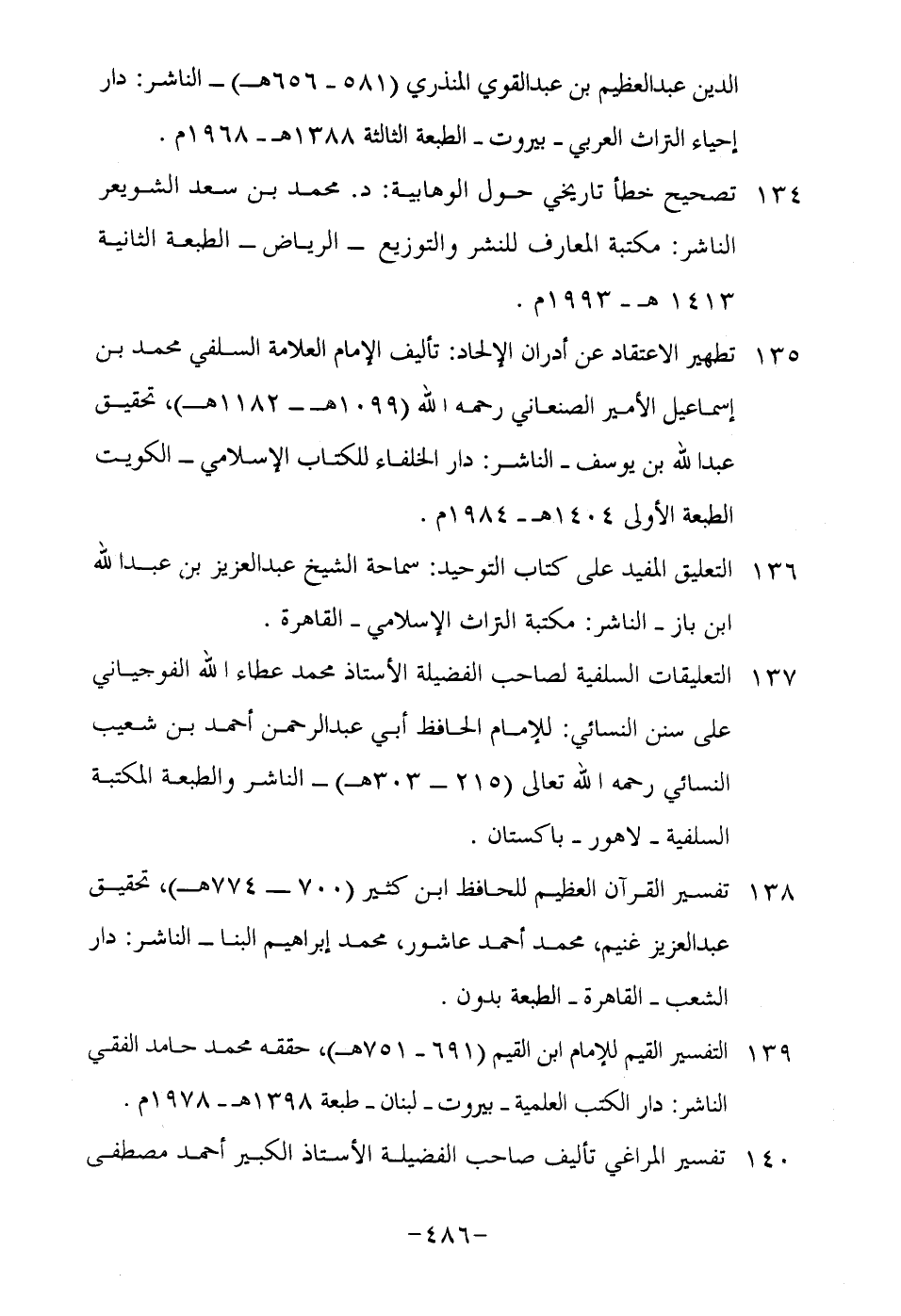 134-تصحيح خطأ تاريخي حول الوهابية: د. محمد بن سعد الشويعر الناشر: مكتبة المعارف للنشر والتوزيع- الرياض- الطبعة الثانية 1413هـ-1993م.