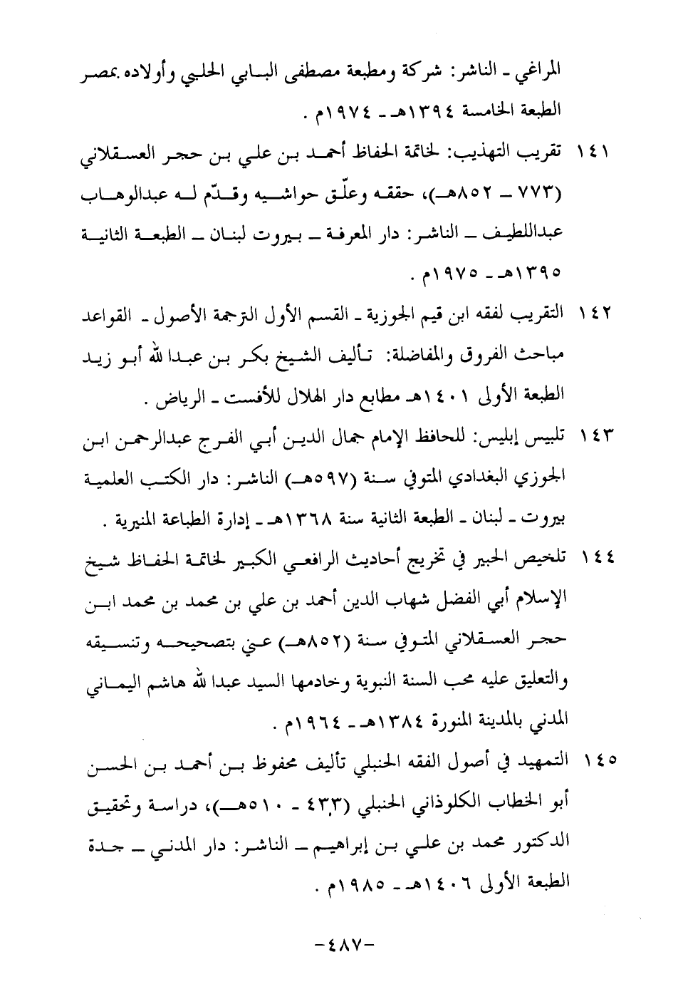 141-تقريب التهذيب: لخاتمة الحفاظ أحم دبن علي بن حجر العسقلاني "773-852هـ", حققه وعلق حواشيه وقدم له عبد الوهاب عبد اللطيف- الناشر: دار المعرفة – بيروت لبنان- الطبعة الثانية 1395هـ-1975م.