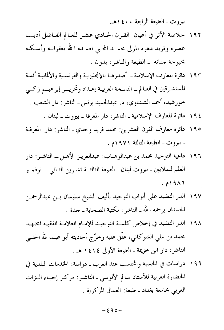 192-خلاصة الأثر في أعيان القرن الحادي عشر للعالم الفاضل أديب عصره وفريد دهره المولى محمد المحبي تغمده الله بغفرانه وأسكنه بحبوحة جنانه- الطبعة والناشر: بدون.