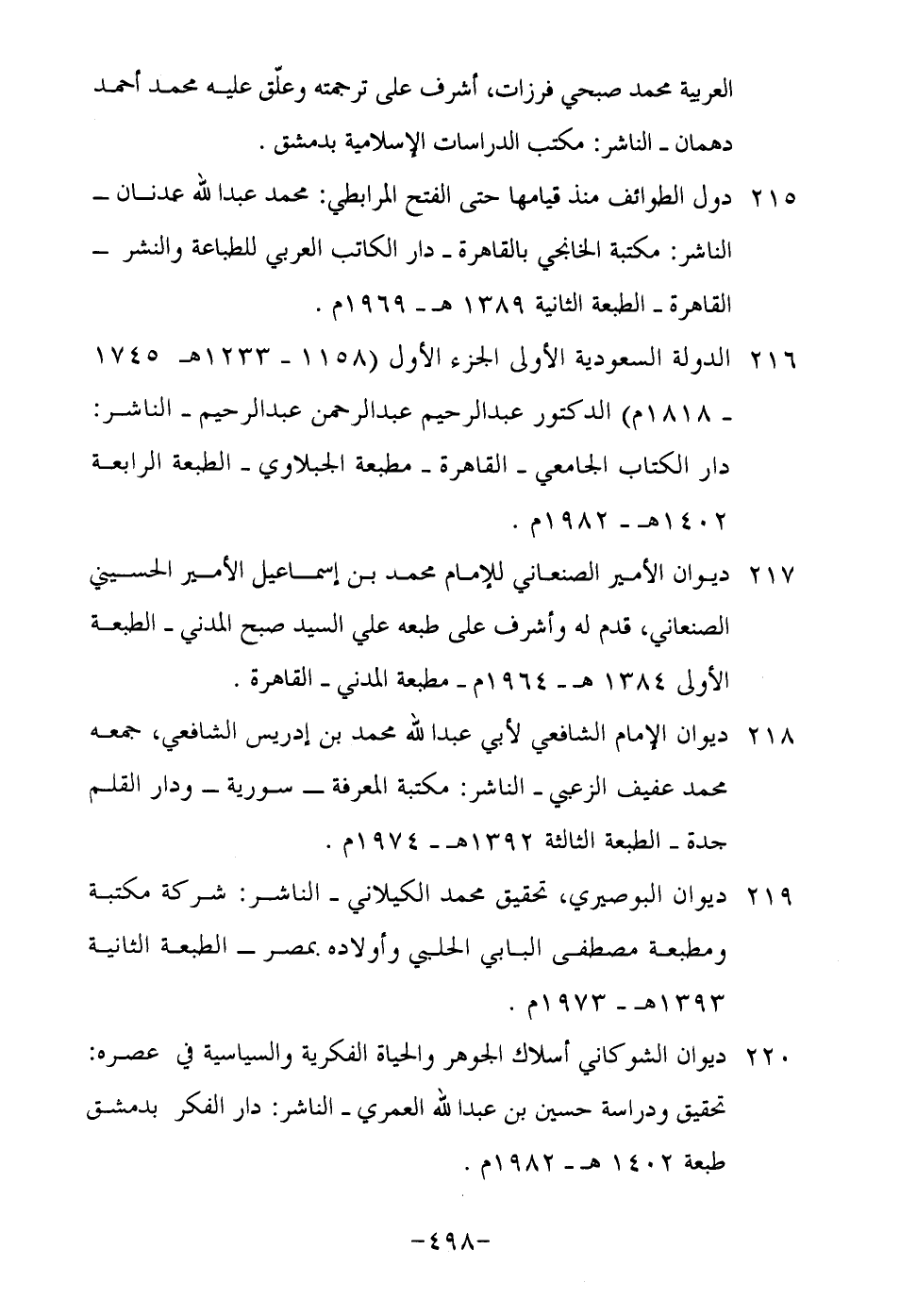 217-ديوان الأمير الصنعاني للإمام محمد بن إسماعيل الأمير الحسيني الصنعاني, قدم له وأشرف على طبعه على السيد صبح المدني- الطبعة الأولى 1384هـ-1964م- مطبعة المدني- القاهرة.