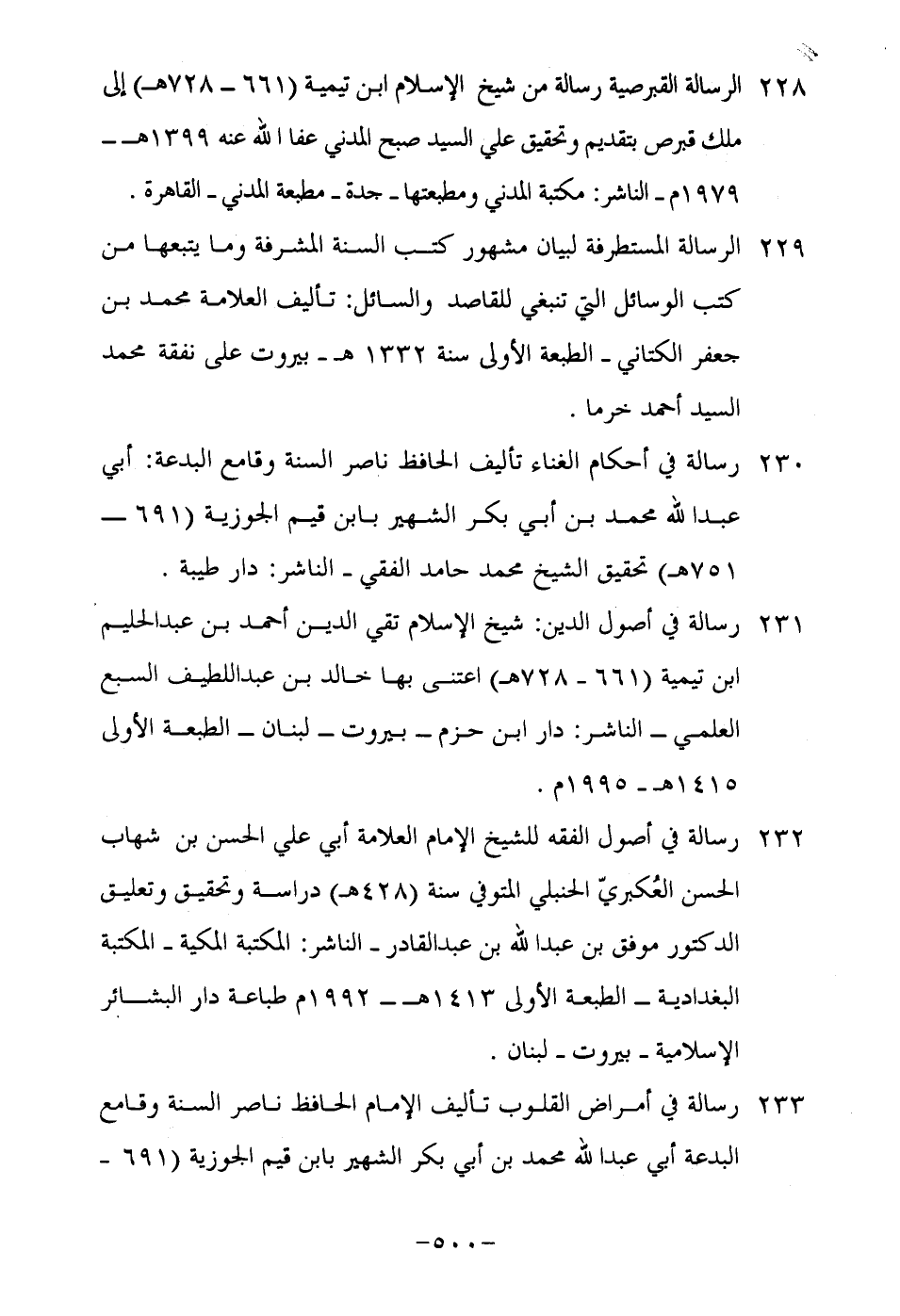 231-رسالة في أصول الديسن: شيخ الإسلام تقي الدين أحمد بن عبد الحليم بن تيمية "661-728هـ" اعتنى بها خالد بن عبد اللطيف السبع العلمي- الناشر: دار ابن حزم- بيروت- لبنان- الطبعة الأولى 1415هـ-1995م.