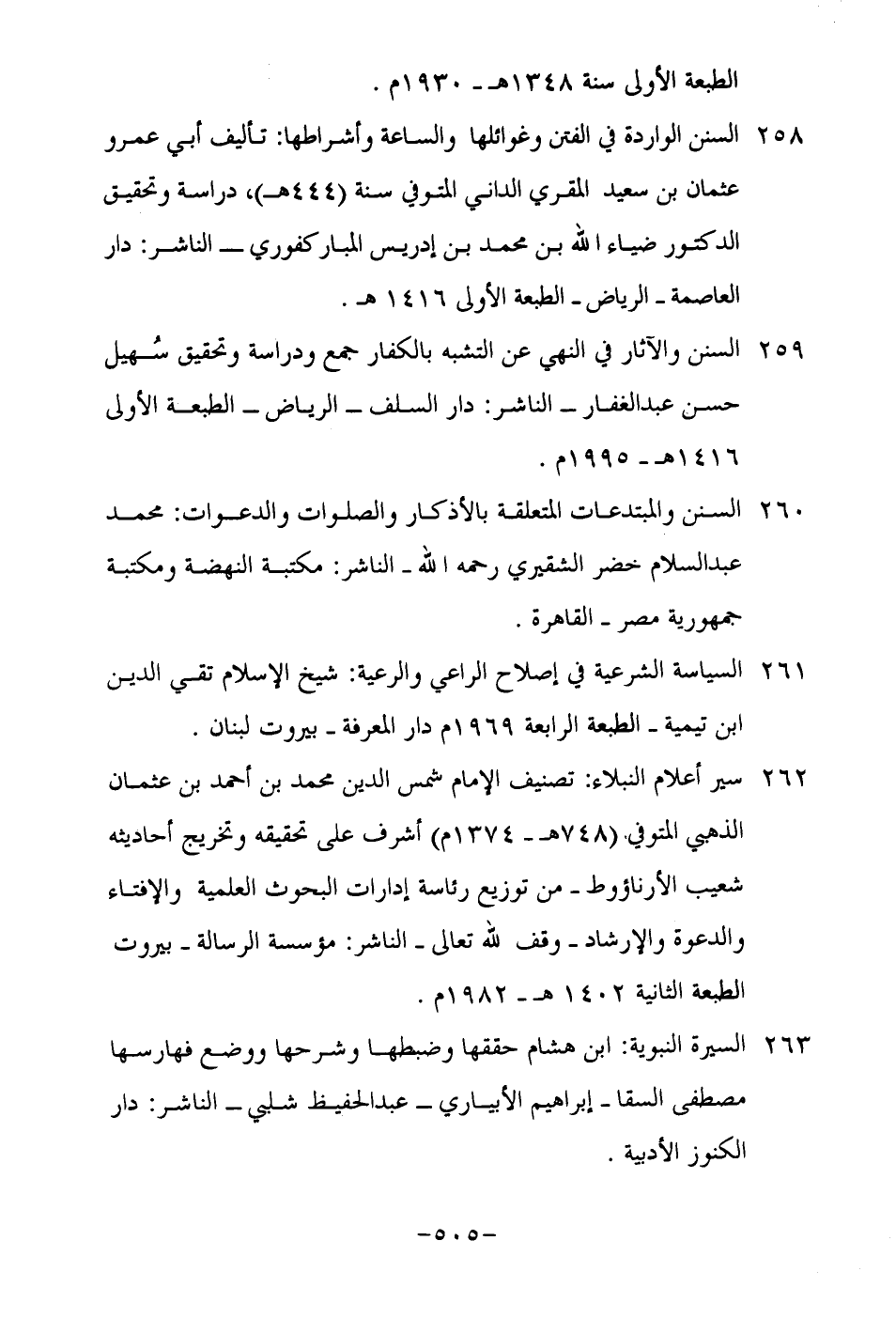 263-السيرة النبوية: ابن هشام حققها وضبطها وشرحها ووضع فهارسها مصطفى السقا- إبراهيم الأبياري- عبد الحفيظ شبلي- الناشر: دار الكنوز الأدبية.
