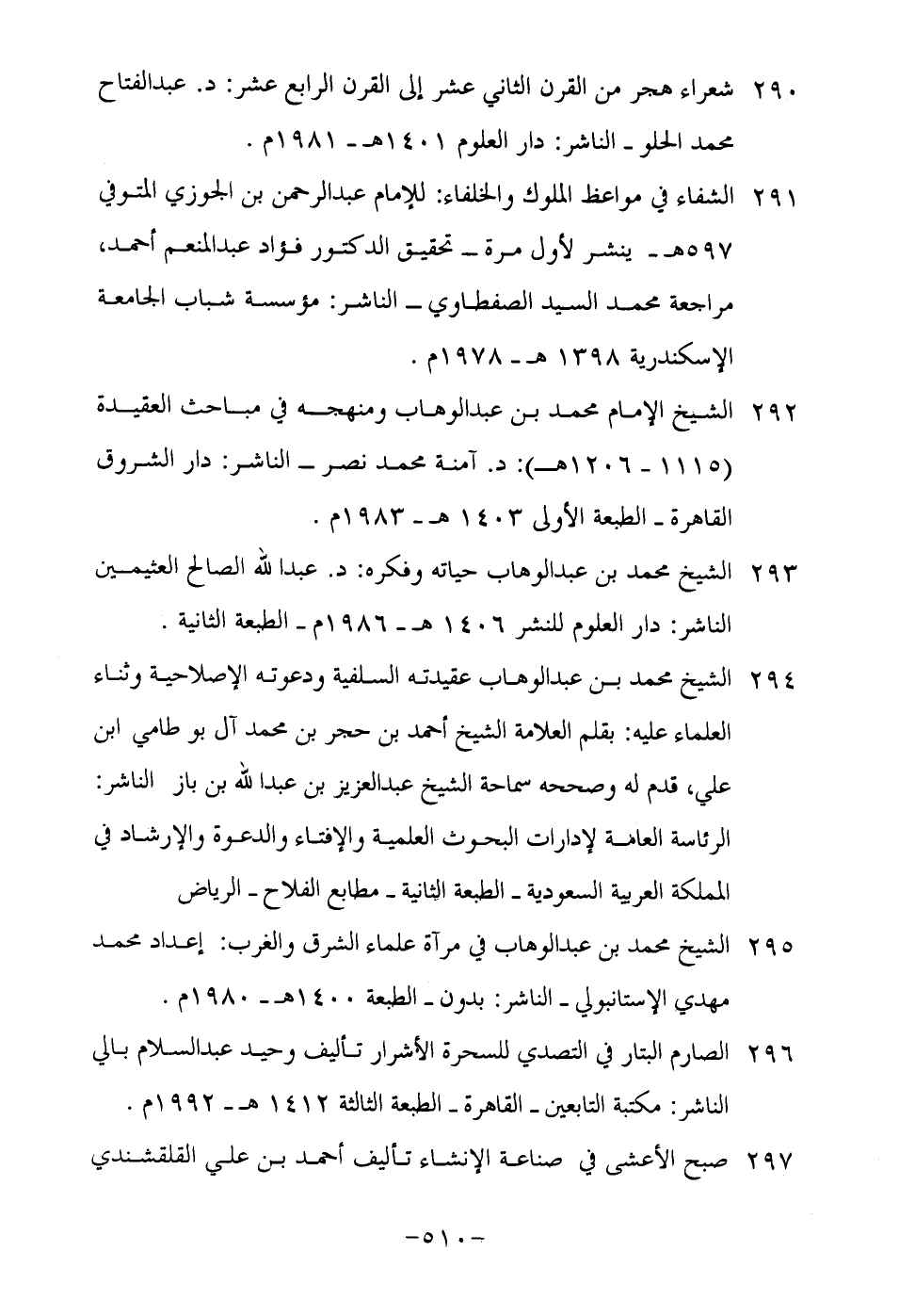 295- الشيخ محمد بن عبد الوهاب في مرآة علماء الشرق والغرب: إعداد محمد مهدي الإستنبولي- الناشر: بدون- الطبعة 1400هـ-1980م.