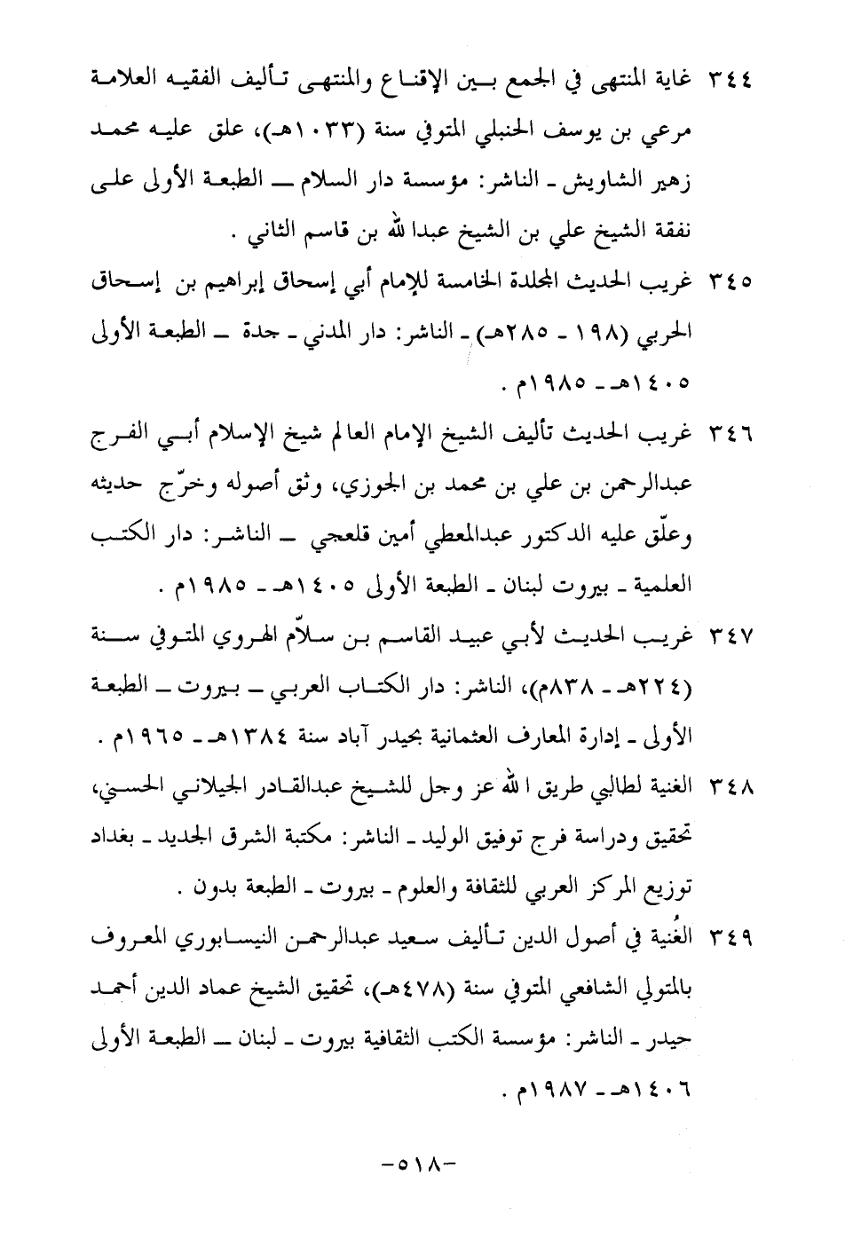 344-غاية المنتهى في الجمع بين الإقناع والمنتهى تأليف الفقيه العلامة مرعي بن يوسف الحنبلي المتوفى سنة "1033هـ", علق عليه محمد زهير الشاويش- الناشر: مؤسسة دار السلام- الطبعة الأولى على نفقة الشيخ علي بن الشيخ عبد الله بن قاسم الثاني.