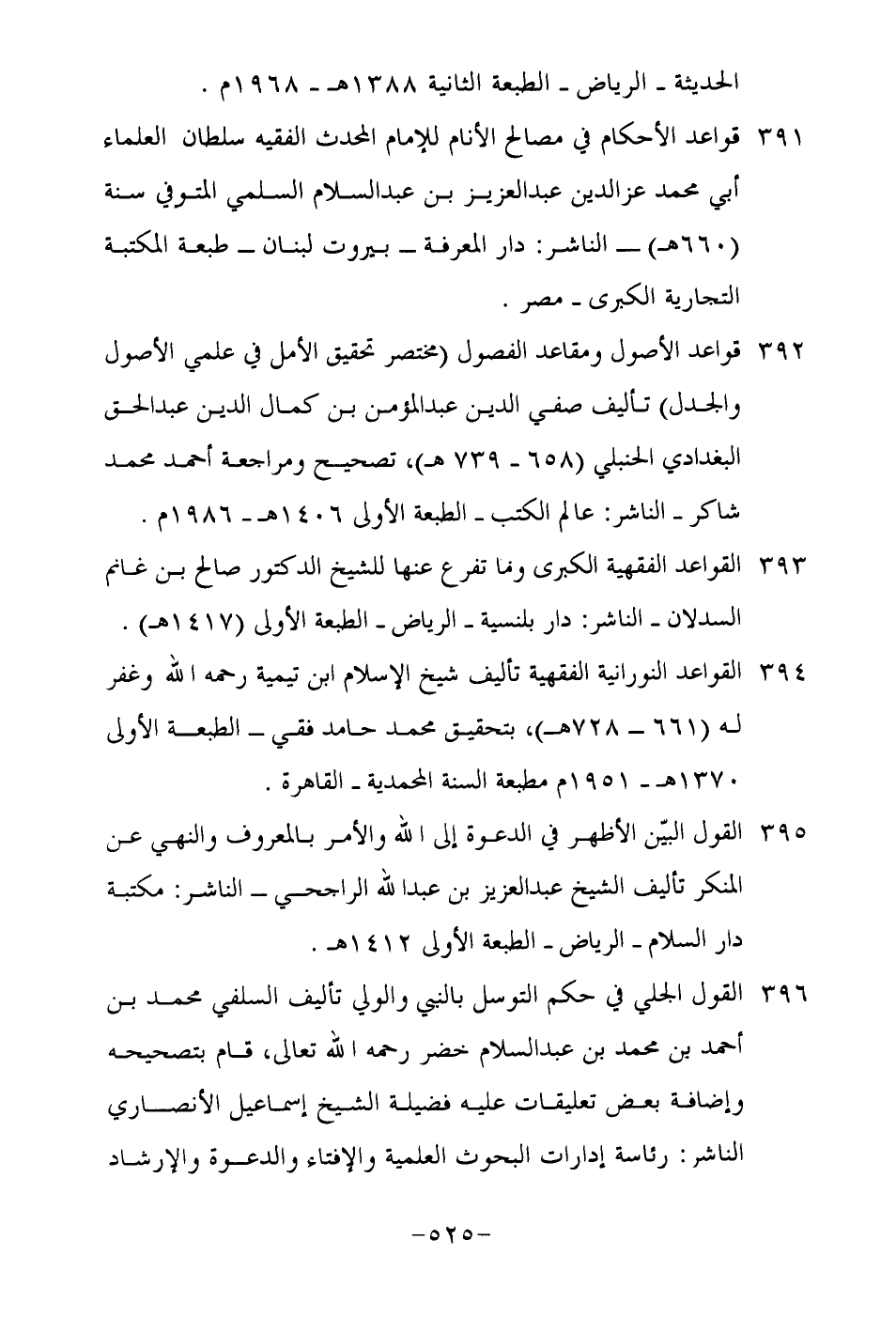 394-القواعد النورانية الفقهية تأليف شيخ الإسلام ابن تيمية رحمه الله وغفر له "661-728هـ", بتحقيق محمد حامد فقي- الطبعة الأولى 1370هـ-1951م مطبعة السنة المحمدية- القاهرة.