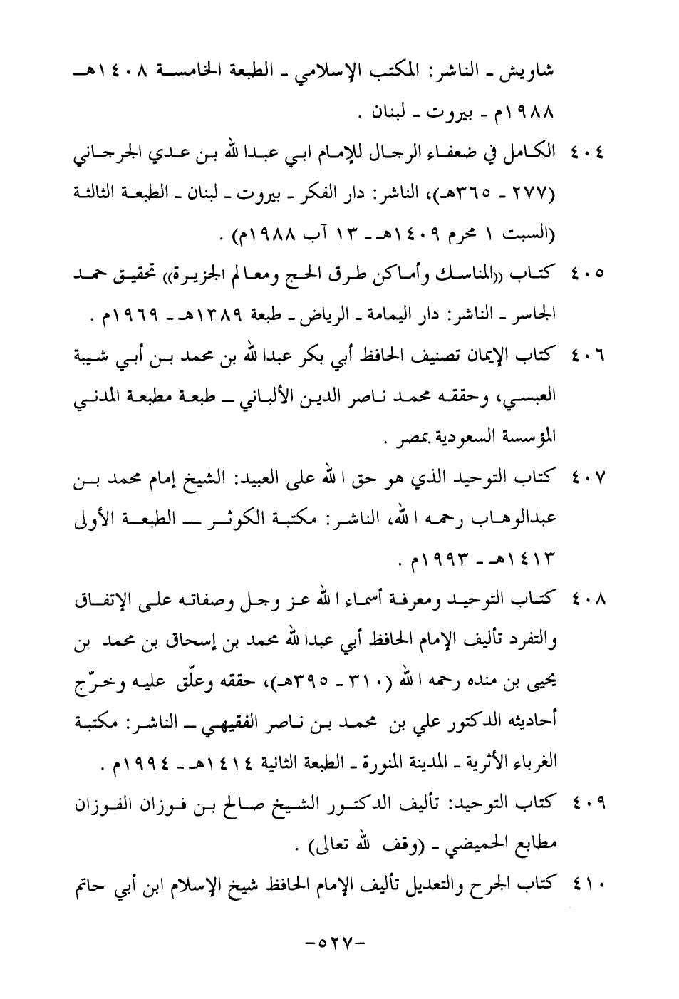 406-كتاب الإيمان تصنيف الحافظ أبي بكر عبد الله بن محمد بن أبي شيبة العبسي, وحققه محمد ناصر الدين الألباني- طبعة مطبعة المدني المؤسسة السعودية بمصر.