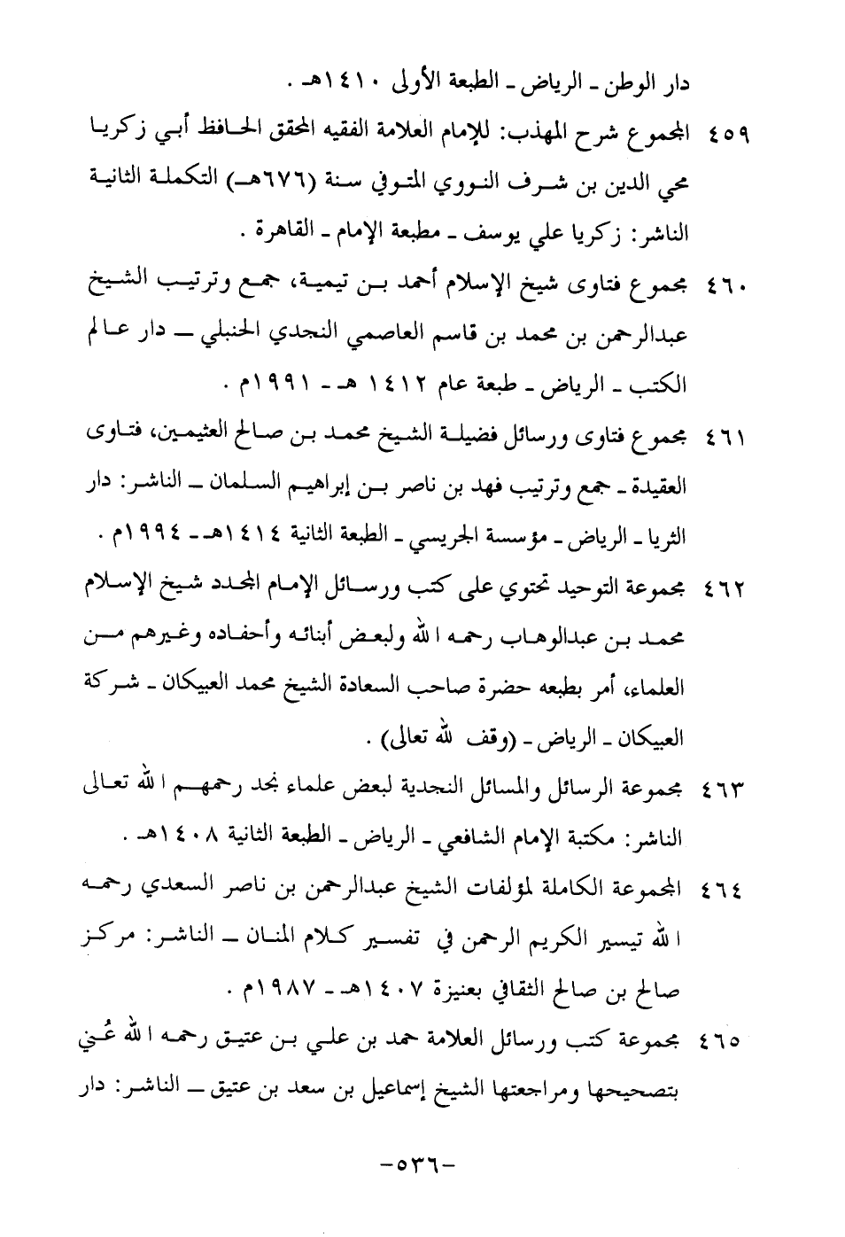 459-المجموع شرح المهذب: للإمام العلامة الفقيه المحقق الحافظ أبي زكريا محي الدين بن شرف النووي المتوفى سنة "676هـ" التكملة الثانية الناشر: زكريا علي يوسف- مطبعة الإمام- القاهرة.