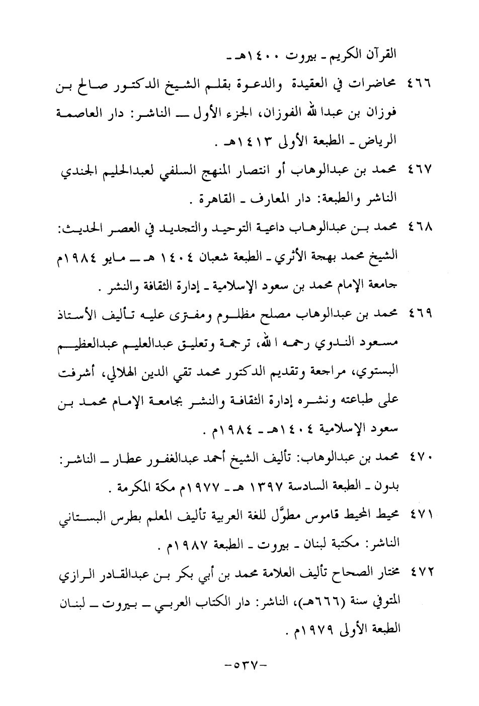 470 محمد بن عبد الوهاب: تأليف الشيخ أحمد عبد الغفور عطار- الناشر: بدون- الطبعة السادسة 1397هـ- 1977م مكة المكرمة.
