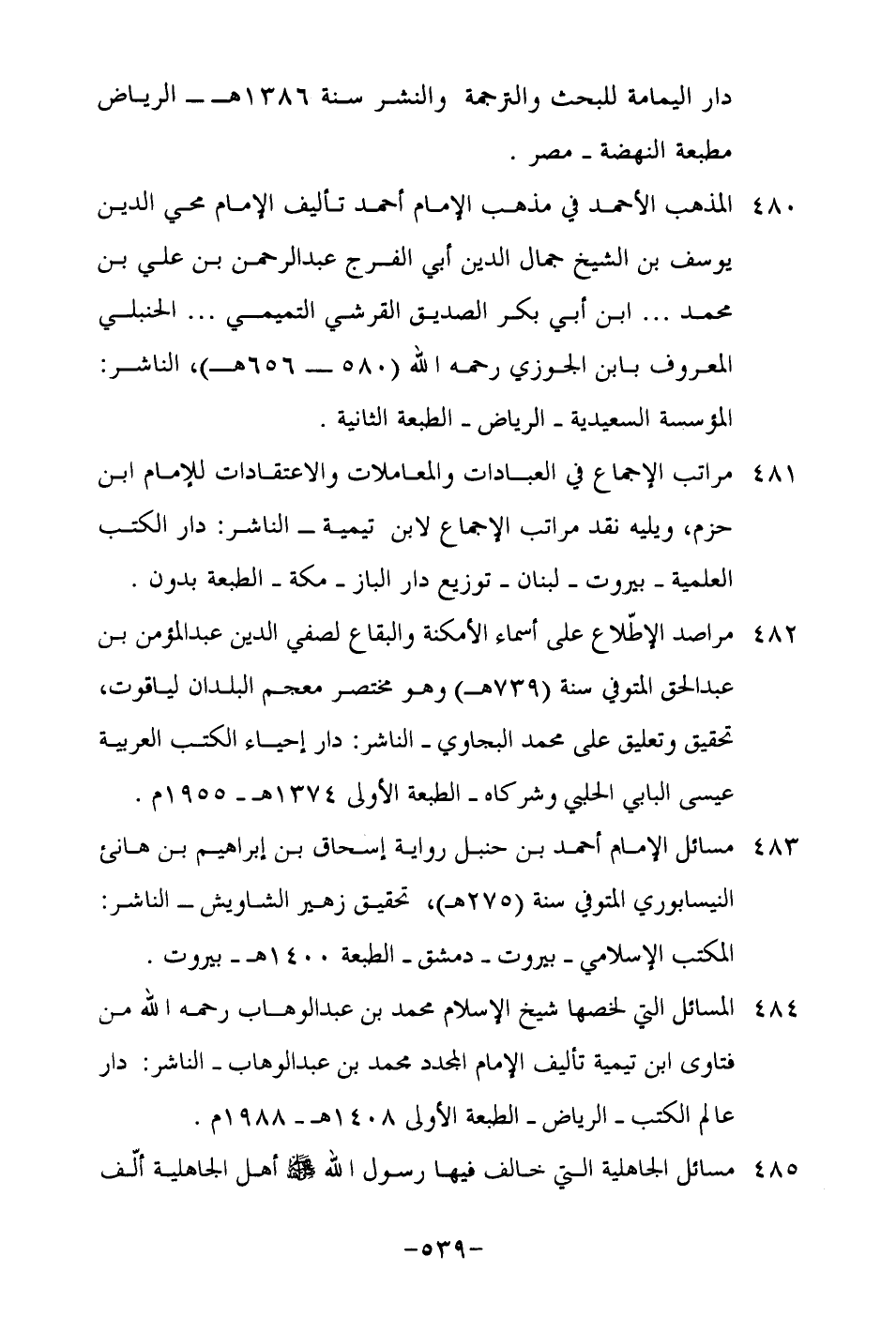 484 المسائل التي لخصها شيخ الإسلام محمد بن عبد الوهاب رحمه الله من فتاوى ابن تيمية تأليف الإمام المجدد محمد بن عبد الوهاب- الناشر: دار عالم الكتب- الرياض- الطبعة الأولى 1408هـ- 1988م.