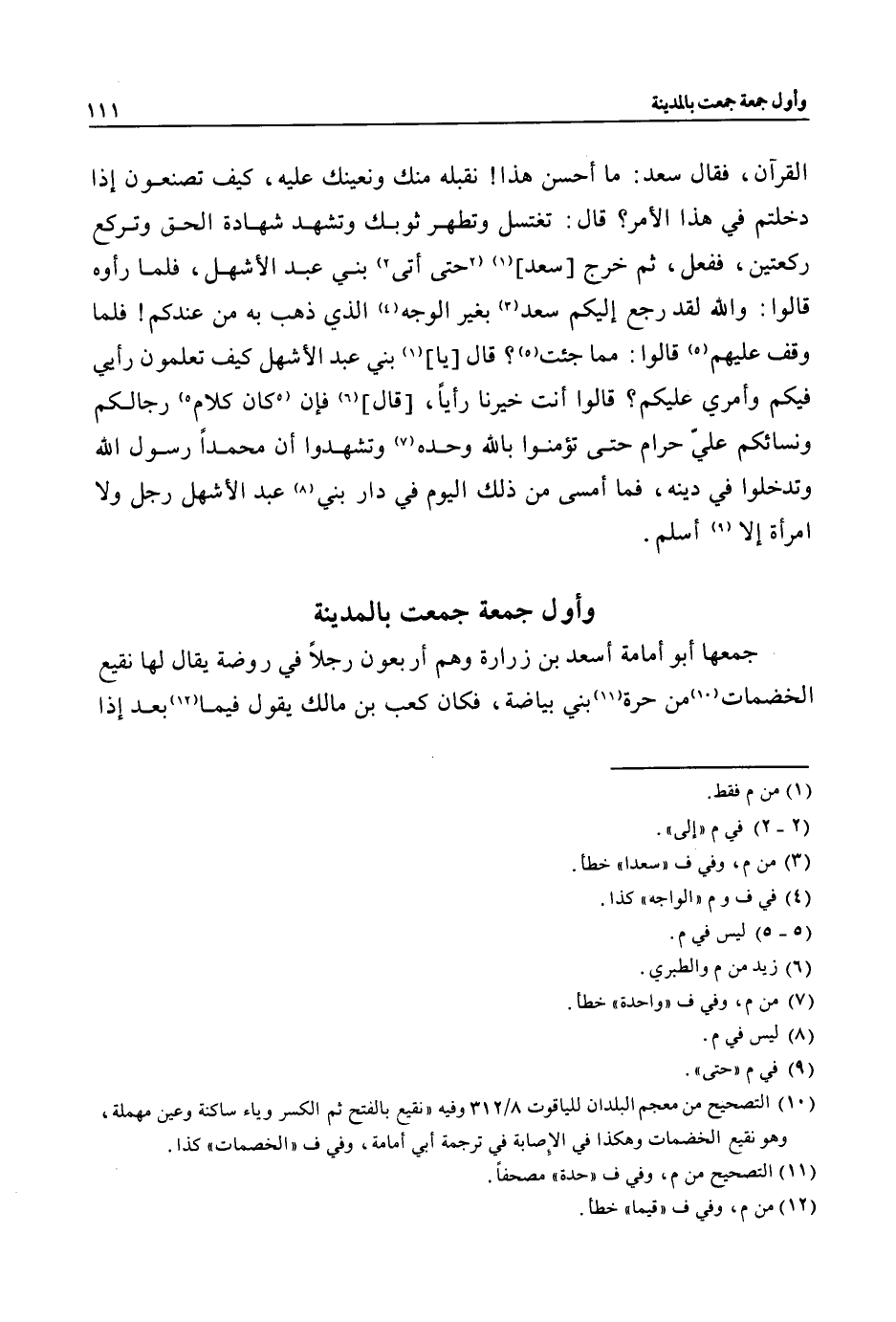القرآن، فقال سعد: ما أحسن هذا! نقبله منك ونعينك عليه، كيف تصنعون إذا دخلتم في هذا الأمر؟ قال: تغتسل وتطهر ثوبك وتشهد شهادة الحق وتركع ركعتين، ففعل، ثم خرج [سعد] «1» «2» حتى أتى «2» بني عبد الأشهل، فلما رأوه قالوا: والله لقد رجع إليكم سعد «3» بغير الوجه «4» الذي ذهب به من عندكم! فلما وقف عليهم «5» قالوا: مما جئت «5» ؟ قال [يا] «1» بني عبد الأشهل كيف تعلمون رأيي فيكم وأمري عليكم؟ قالوا أنت خيرنا رأيا، [قال] «6» فإن «5» كان كلام «5» رجالكم ونسائكم عليّ حرام حتى تؤمنوا بالله وحده «7» وتشهدوا أن محمدا رسول الله وتدخلوا في دينه، فما أمسى من ذلك اليوم في دار بني «8» عبد الأشهل رجل ولا امرأة إلا «9» أسلم.