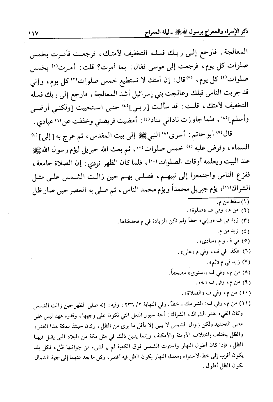قال «7» أبو حاتم: أسرى «8» النبي صلى الله عليه وسلم إلى بيت المقدس، ثم عرج به [إلى] «4» السماء، وفرض عليه «9» خمس صلوات «2» ، ثم بعث الله جبريل ليؤم رسول الله صلى الله عليه وسلم عند البيت ويعلمه أوقات الصلوات «10» ، فلما كان الظهر نودي: إن الصلاة جامعة، ففزع الناس واجتمعوا إلى نبيهم، فصلى بهم حين زالت الشمس على مثل الشراك «11» ، يؤم جبريل محمدا ويؤم محمد الناس، ثم صلى به العصر حين صار ظل