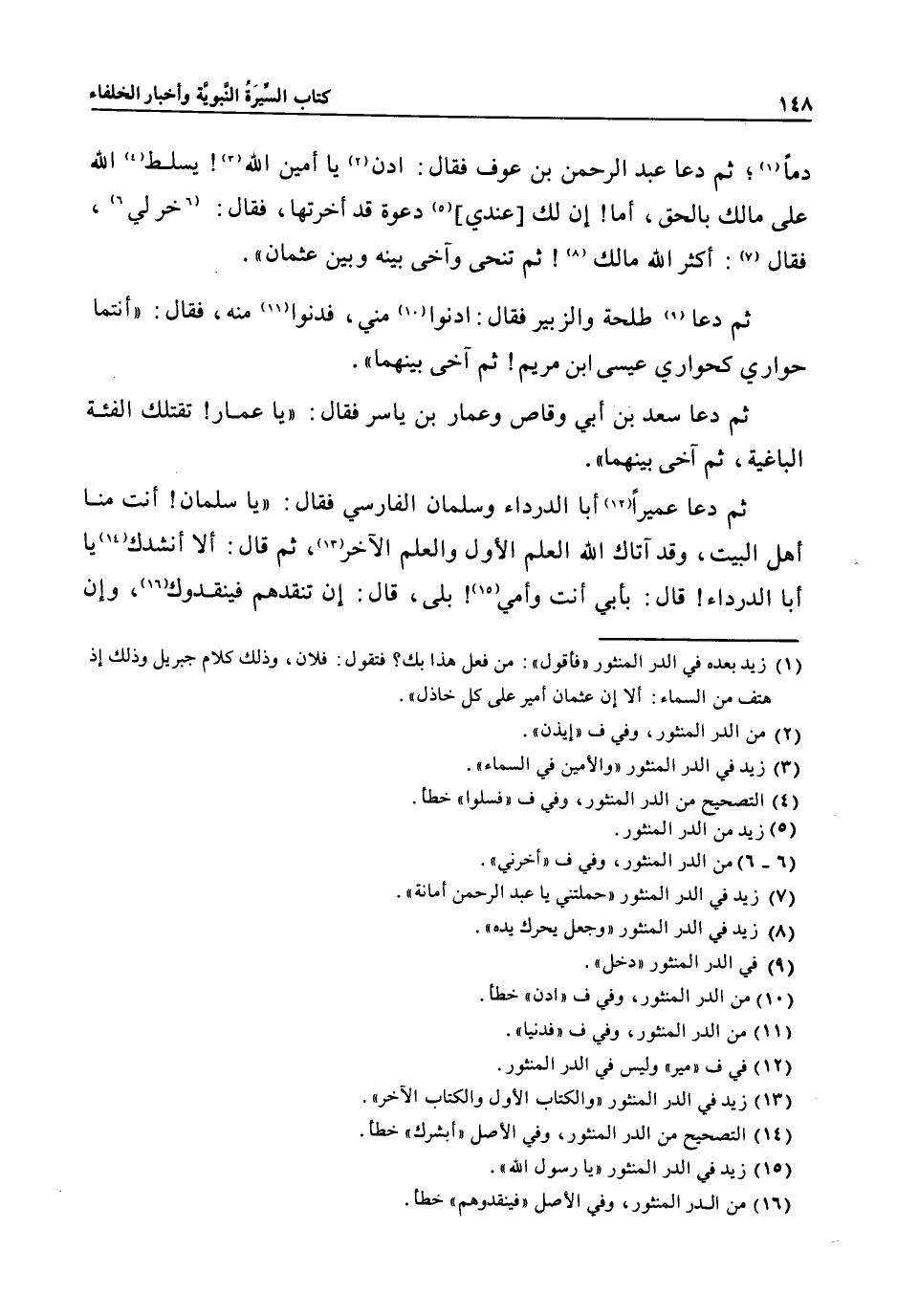 دما «1» ؛ ثم دعا عبد الرحمن بن عوف فقال: ادن «2» يا أمين الله «3» ! يسلط «4» الله على مالك بالحق، أما! إن لك [عندي] «5» دعوة قد أخرتها، فقال: «6» خرلي «6» ، فقال «7» : أكثر الله مالك «8» ! ثم تنحى وآخى بينه وبين عثمان» .