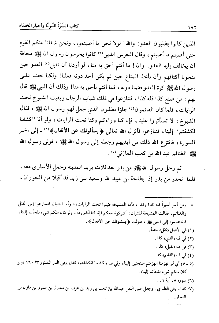 (7) كذا، وفي الطبري: وجعل على النفل عبد الله بن كعب بن زيد بن عوف بن مبذول بن عمرو بن مازن بن النجار.