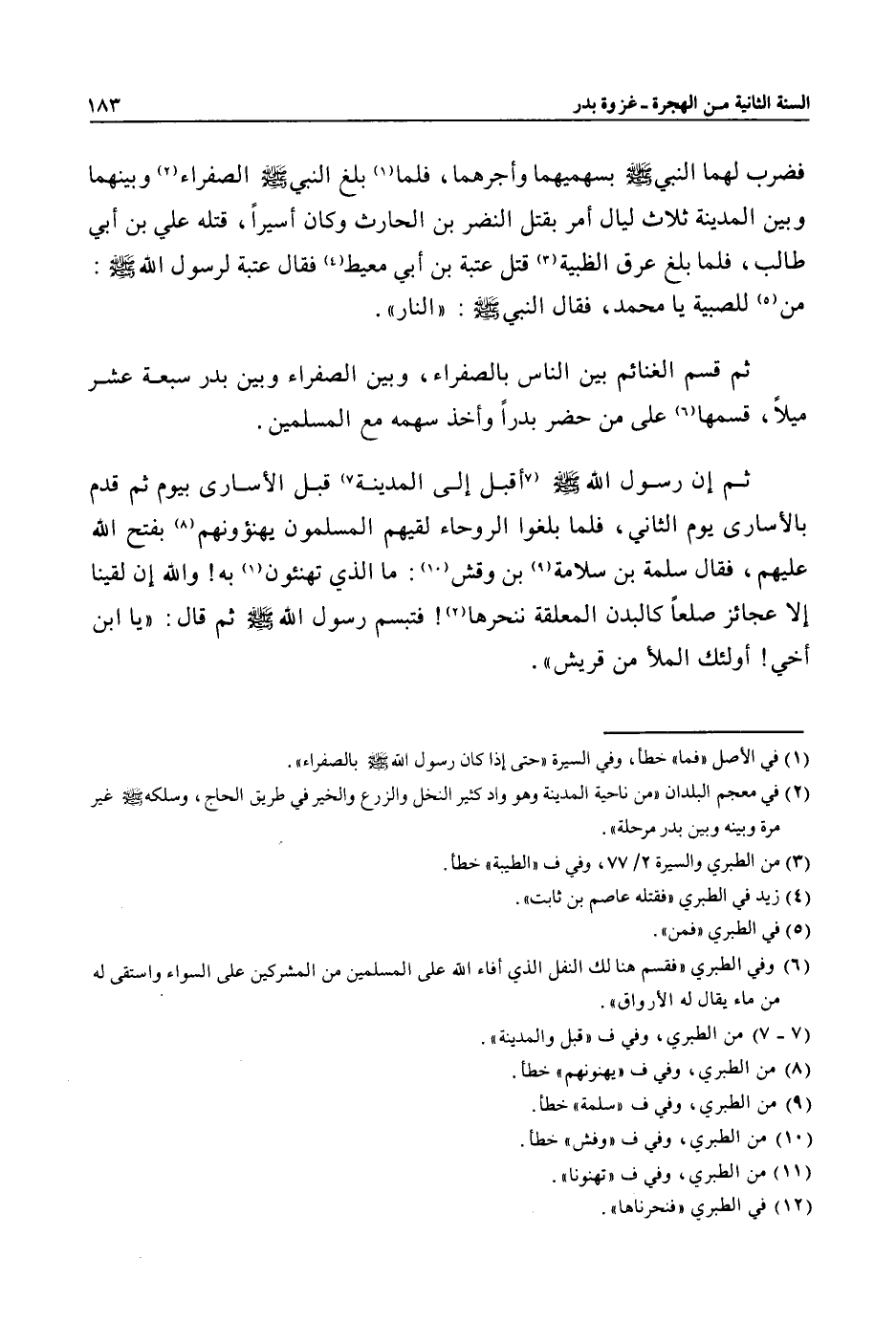 (2) في معجم البلدان «من ناحية المدينة وهو واد كثير النخل والزرع والخير في طريق الحاج، وسلكه صلى الله عليه وسلم غير مرة وبينه وبين بدر مرحلة» .