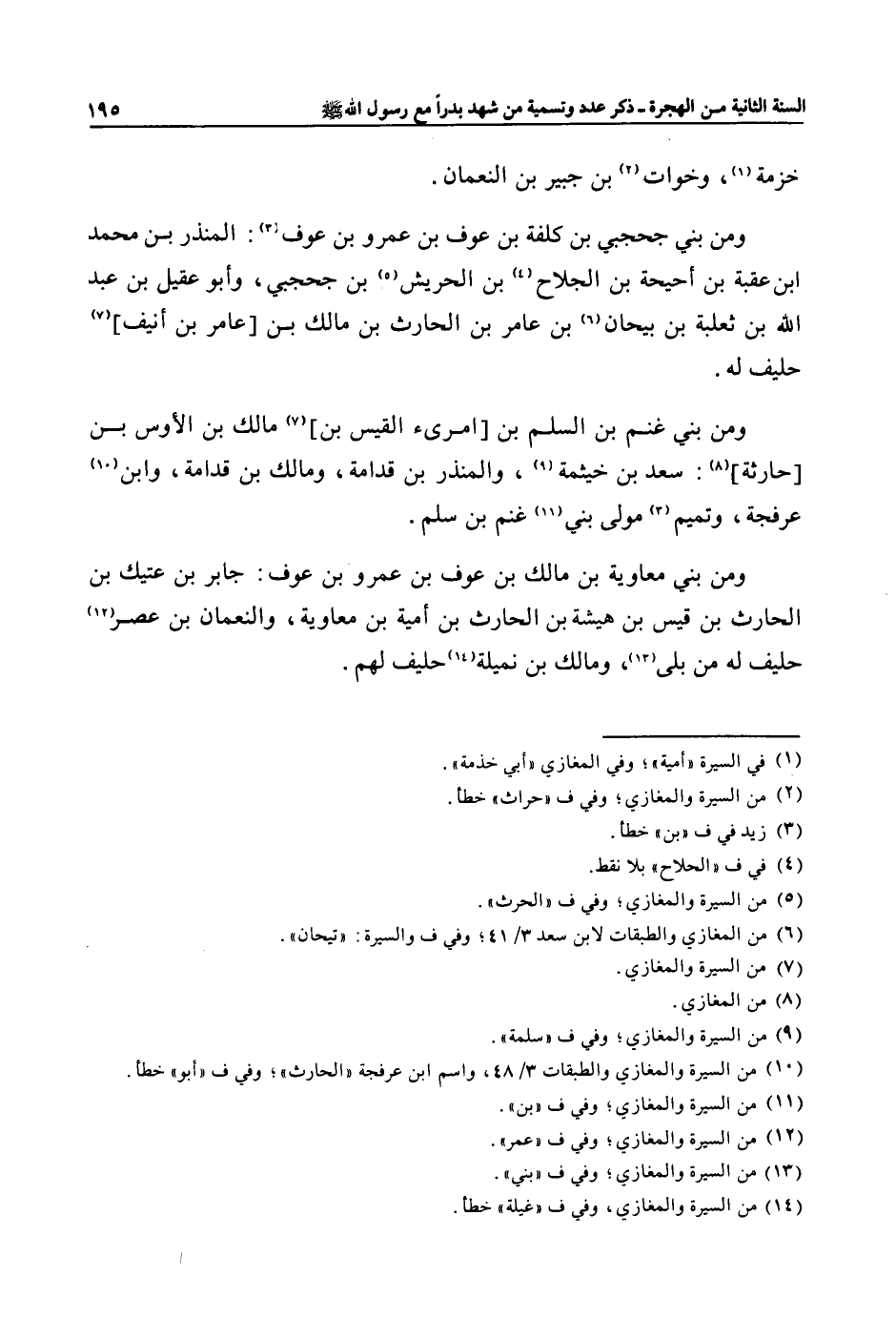 ومن بني غنم بن السلم بن [امرىء القيس بن] «7» مالك بن الأوس بن [حارثة] «8» : سعد بن خيثمة «9» ، والمنذر بن قدامة، ومالك بن قدامة، وابن «10» عرفجة، وتميم «3» مولى بني «11» غنم بن سلم.