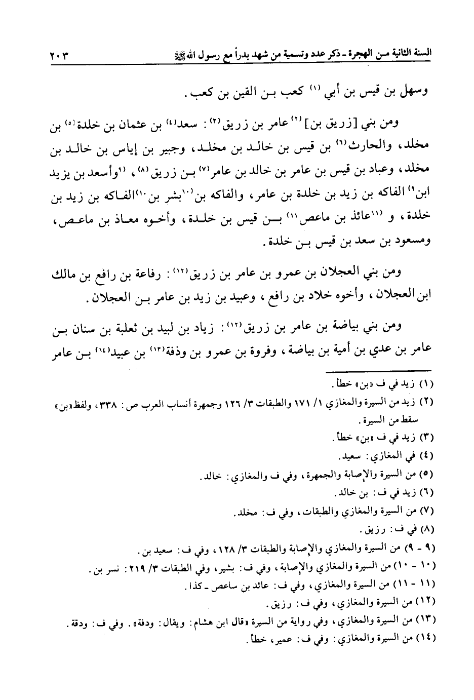 (2) زيد من السيرة والمغازي 1/ 171 والطبقات 3/ 126 وجمهرة أنساب العرب ص: 338، ولفظ «بن» سقط من السيرة.