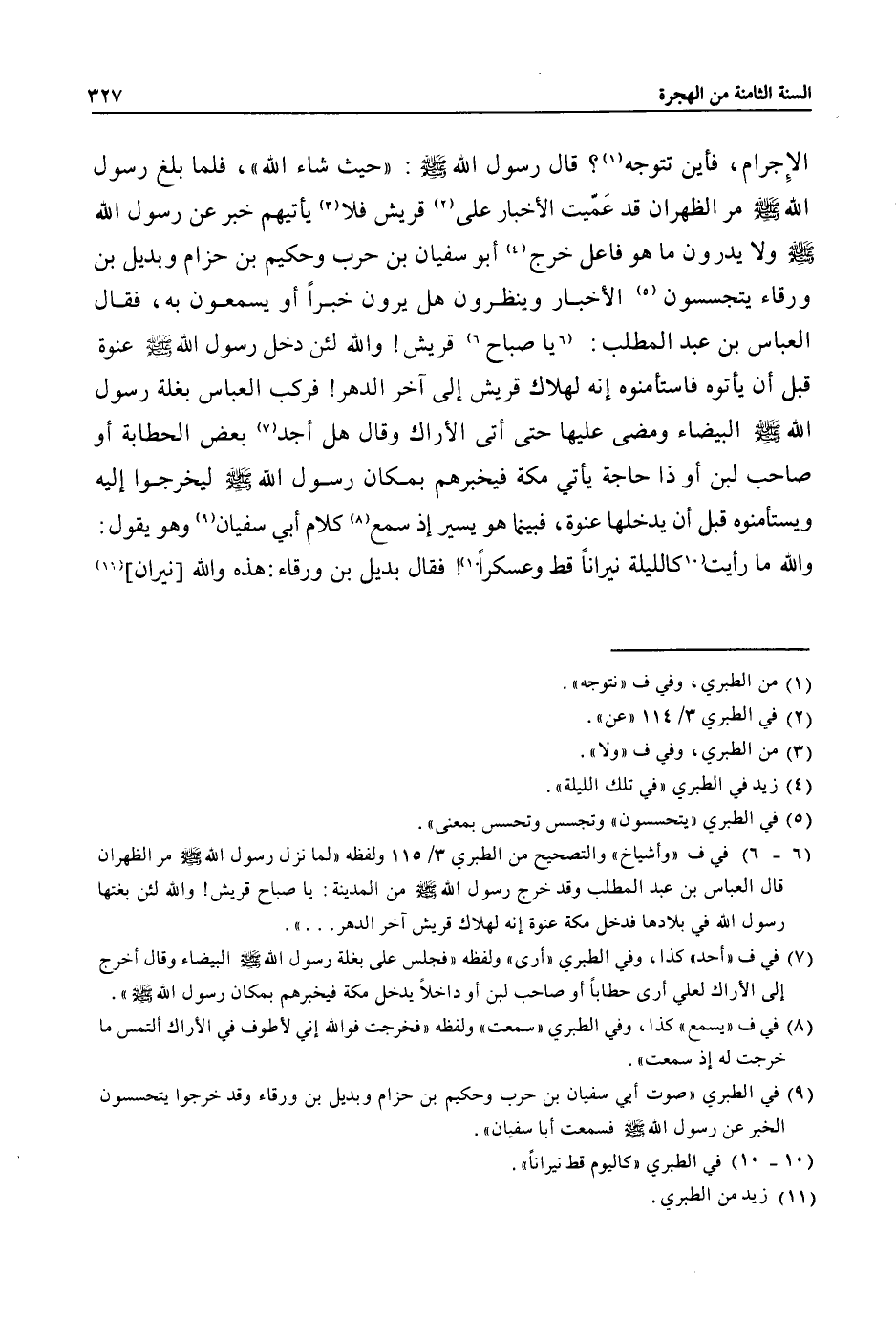 (7) في ف «أحد» كذا، وفي الطبري «أرى» ولفظه «فجلس على بغلة رسول الله صلى الله عليه وسلم البيضاء وقال أخرج إلى الأراك لعلي أرى حطابا أو صاحب لبن أو داخلا يدخل مكة فيخبرهم بمكان رسول الله صلى الله عليه وسلم» .
