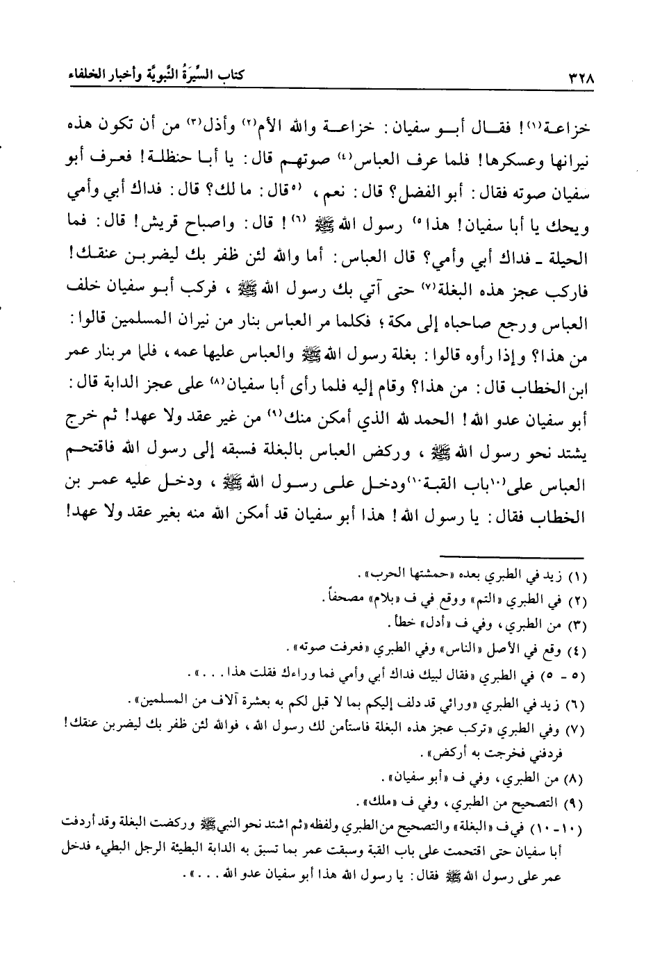 (10- 10) في ف «البغلة» والتصحيح من الطبري ولفظه «ثم اشتد نحو النبي صلى الله عليه وسلم وركضت البغلة وقد أردفت أبا سفيان حتى اقتحمت على باب القبة وسبقت عمر بما تسبق به الدابة البطيئة الرجل البطيء فدخل عمر على رسول الله صلى الله عليه وسلم فقال: يا رسول الله هذا أبو سفيان عدو الله ... » .